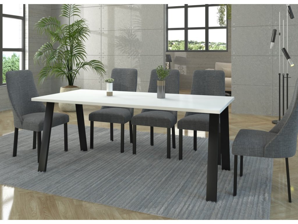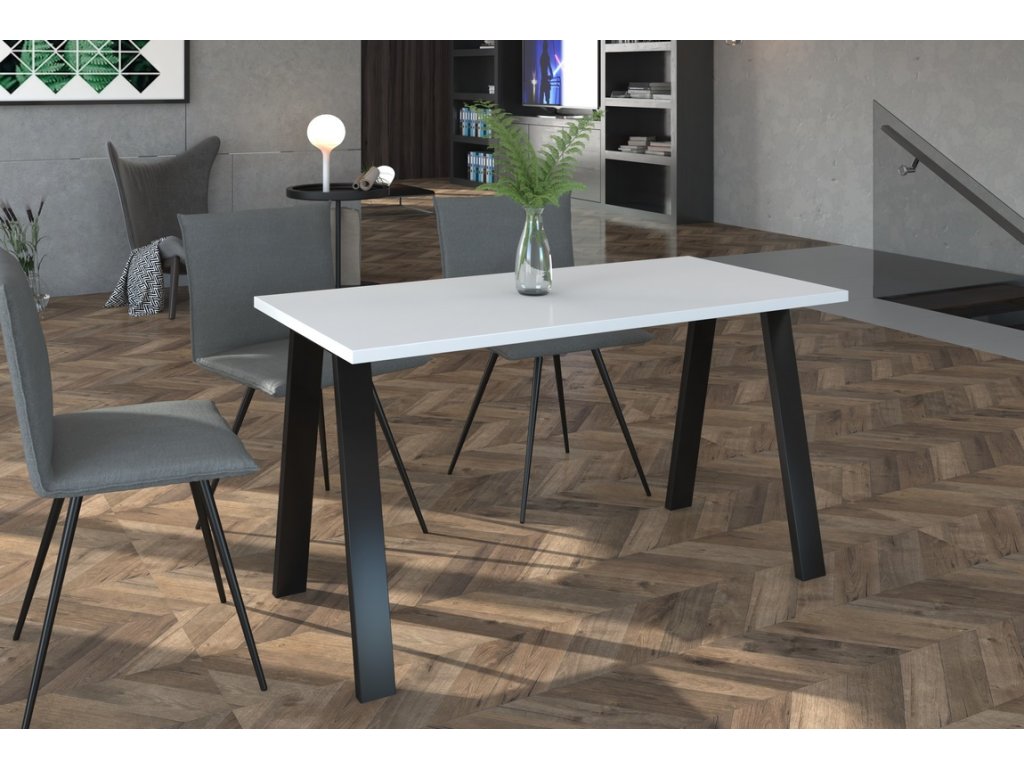 Jídelní stůl je vyroben v jednoduchém industriálním, stylovém a zároveň i moderním designu. Stolová deska je vyrobena z lamina tl.28 mm v barvě bílá, kovové nohy jsou práškově lakované v černé barvě (profil nohy 80x40 mm). Tyto jídelní stoly nabízíme v různých rozměrech a barvách. Dodáváme v demontovaném stavu.Doplňkové parametry