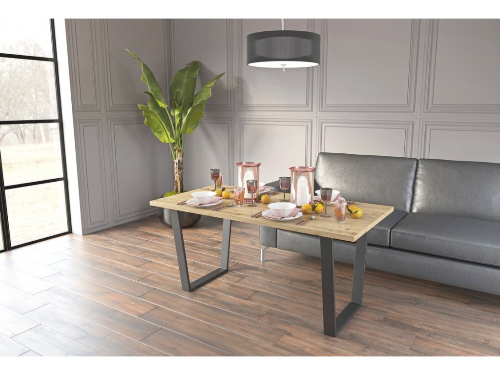 Jídelní stůl je vyroben v jednoduchém industriálním, stylovém a zároveň i moderním designu. Stolová deska je vyrobena z lamina tl.32 mm v barvě dub sonoma, stabilní kovové nohy jsou černé barvy. Dodáváme v demontovaném stavu.Doplňkové parametry