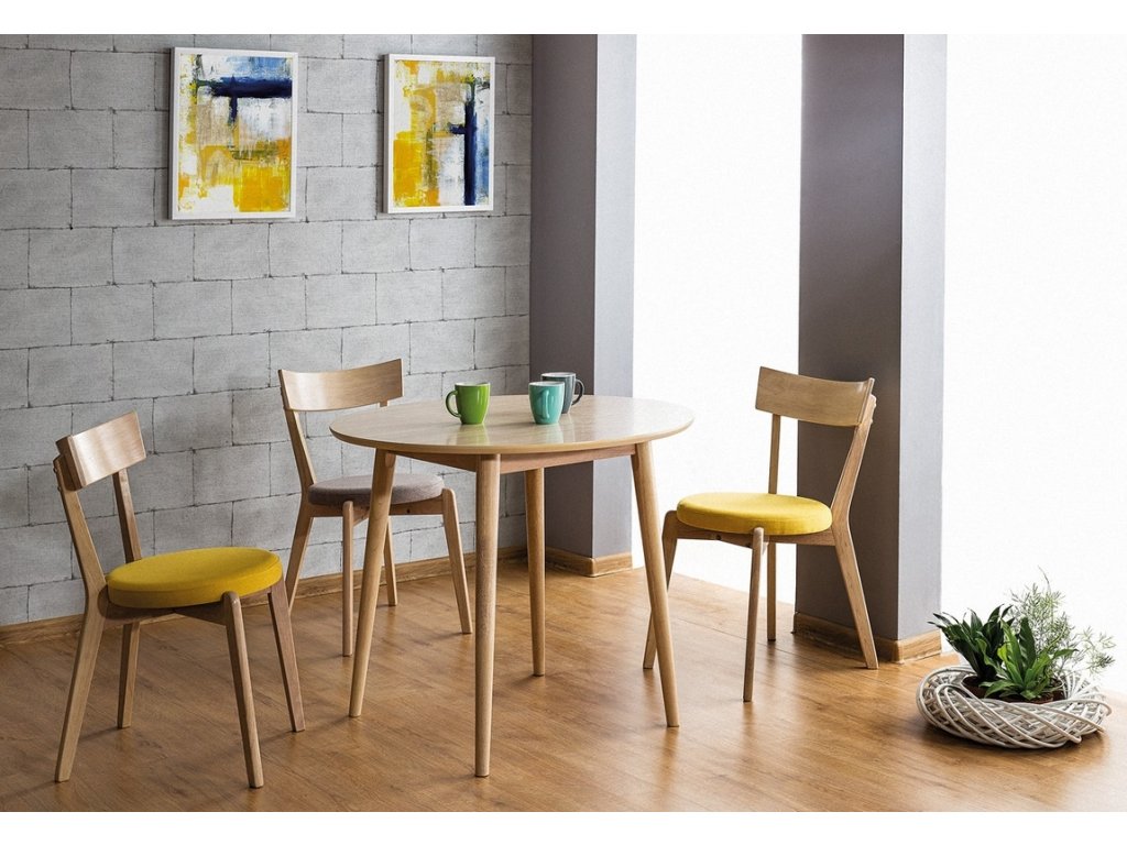 Kulatý jídelní stůl ve stylu loft zaujme svým jednoduchým tvarem a bude ozdobou každého interiéru. Deska stolu je vyrobena z kvalitní MDF potažena přírodní dýhou, nohy stolu jsou z bukového dřeva, barevné provedení dub. K tomuto stolu doporučujeme židle v naší nabídce. Dodáváme v demontovaném stavu.Doplňkové parametry