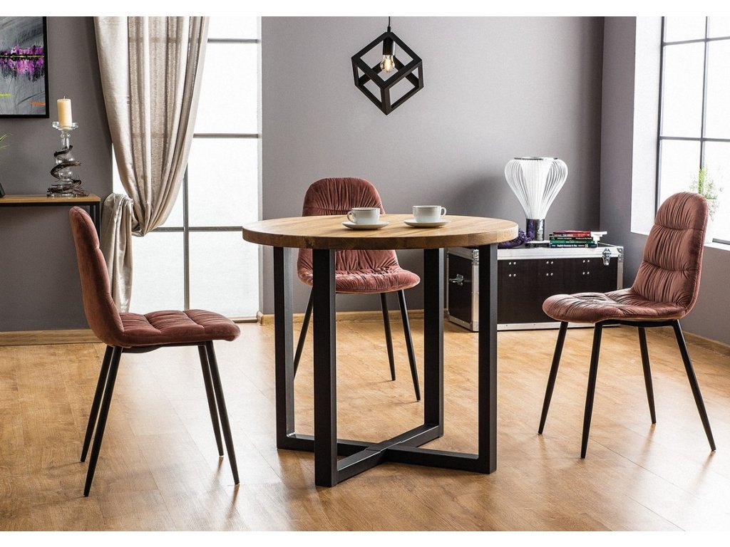 Kulatý jídelní stůl ve stylu loft zaujme svým netradičním tvarem a bude ozdobou každého interiéru. Deska stolu je vyrobena z masivního dubového dřeva, nohy stolu jsou z kovu v černé barvě. K tomuto stolu doporučujeme židle v naší nabídce. Dodáváme v demontovaném stavu.Doplňkové parametry