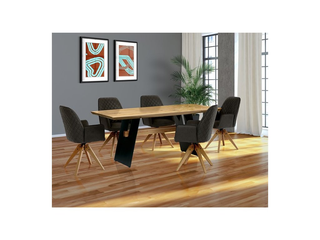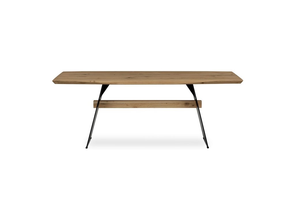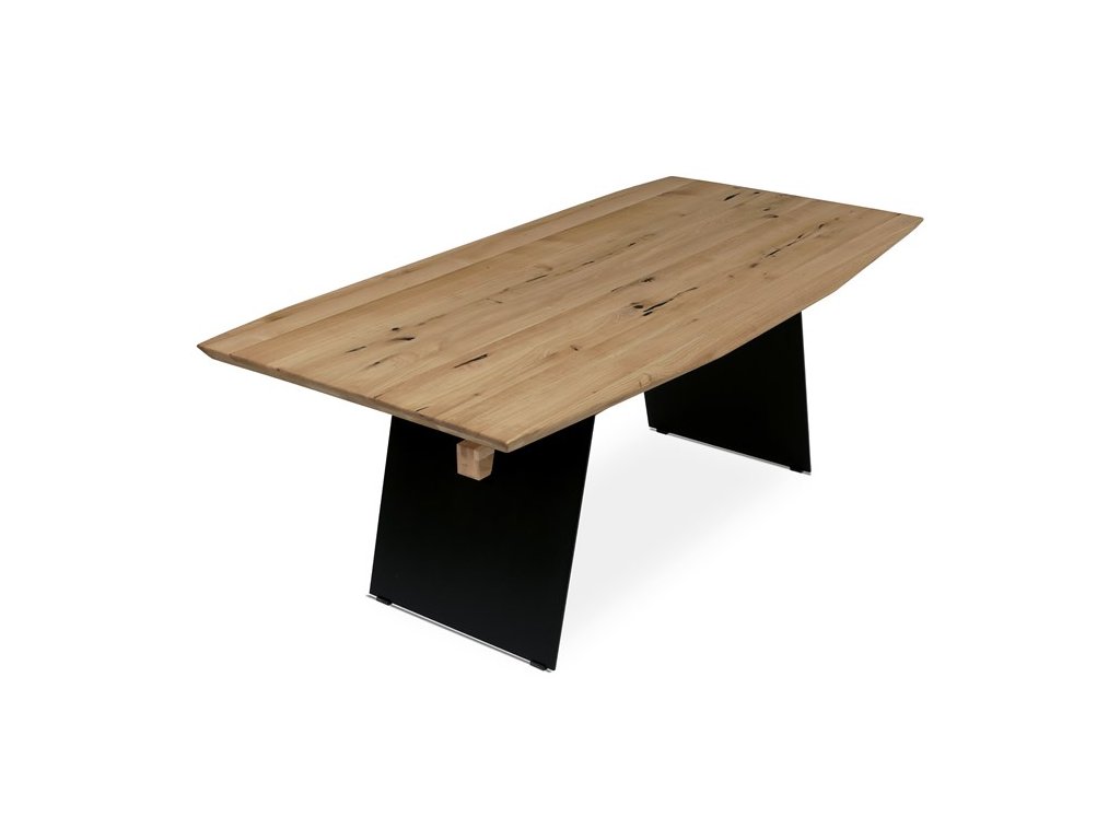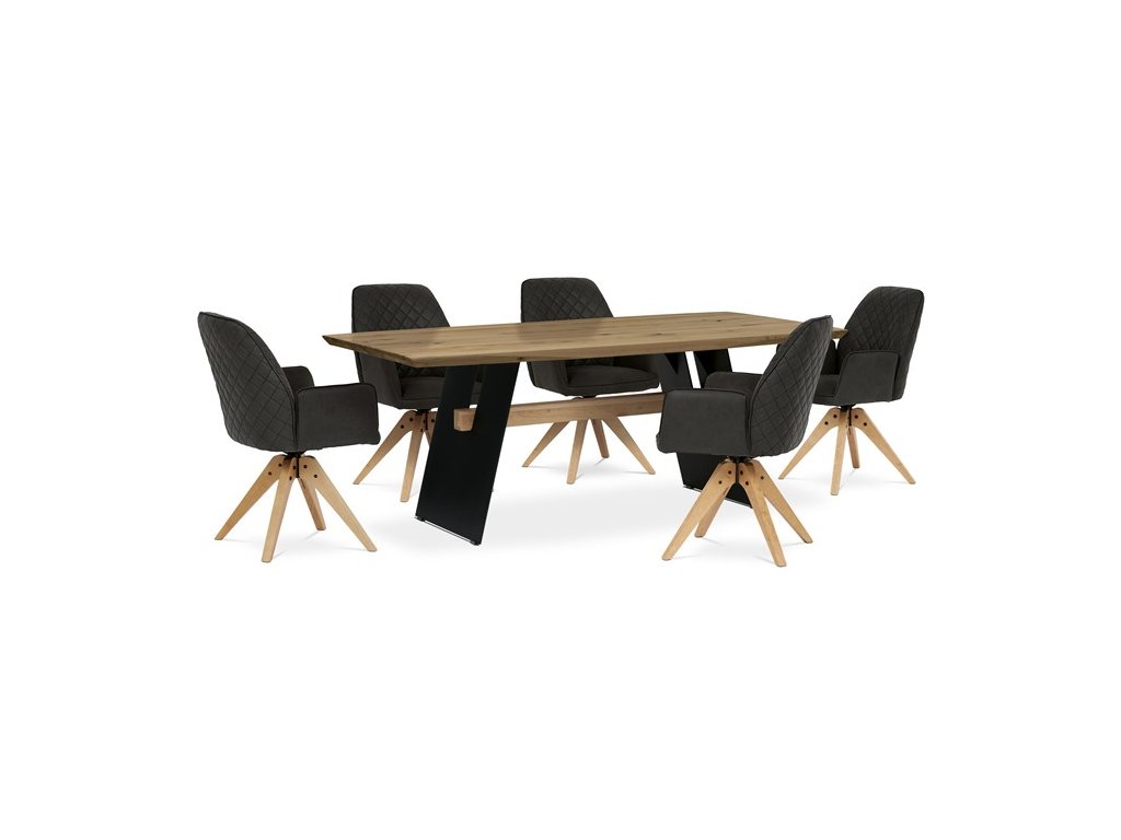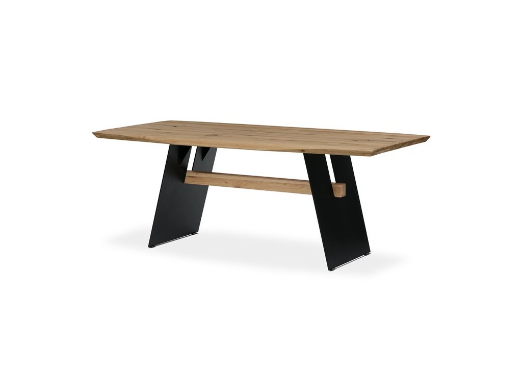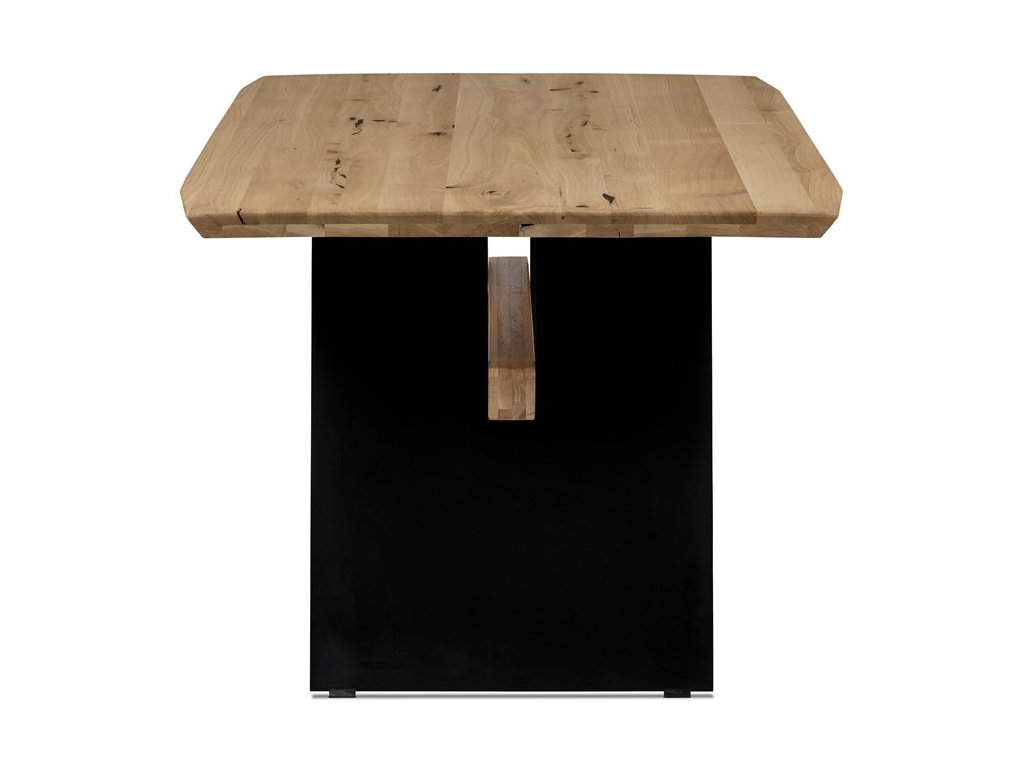 Jídelní stůl o rozměrech 200x100x75 cm kombinuje masivní dubovou desku s olejovanou povrchovou úpravou a stabilní kovovou podnoží v černé barvě. Masivní dubová deska v přírodním odstínu nabízí výraznou strukturu dřeva s viditelnými letokruhy a suky, které podtrhují autentický charakter materiálu. Olejovaný povrch zajišťuje ochranu dřeva a zároveň umožňuje zachovat jeho přirozený vzhled a příjemnou strukturu na dotek. Kovová podnož je navržena tak, aby poskytovala pevnou a stabilní oporu, přičemž její černé matné provedení kontrastuje s teplým tónem dřeva a dodává celku moderní industriální nádech. Stůl je určen pro každodenní použití v jídelnách či kuchyních, kde oceníte jeho robustnost i estetickou hodnotu.