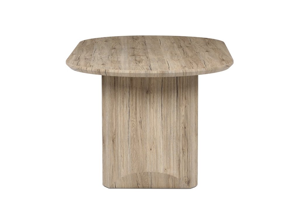 Jídelní stůl značky Autronic v přírodní dubové barvě vyniká moderním designem a kvalitním zpracováním. Oválná deska z MDF materiálu je odolná a snadno udržovatelná, což z něj činí ideální volbu pro rodinné večeře i slavnostní příležitosti. Matná povrchová úprava a detailně propracované nohy dodávají stolu stylový vzhled.