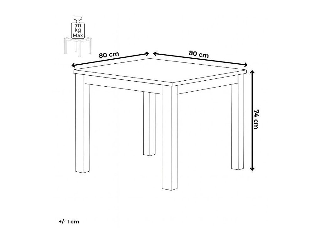 Jídelní stůl s označením DT-316 WT nabízí kombinaci moderního designu a praktických vlastností. Deska stolu je vyrobena z MDF materiálu s matným bílým lakem, který zajišťuje snadnou údržbu a decentní vzhled. Masivní dřevěné nohy dodávají stabilitu a pevnost, přičemž jsou opatřeny rektifikačními patkami pro vyrovnání nerovností podlahy. Zaoblené rohy desky přispívají k bezpečnosti a současně podtrhují jemný designový detail. Stůl má rozměry 80x80x72,5 cm, což ho předurčuje k využití v menších jídelnách nebo kuchyňských koutech.
