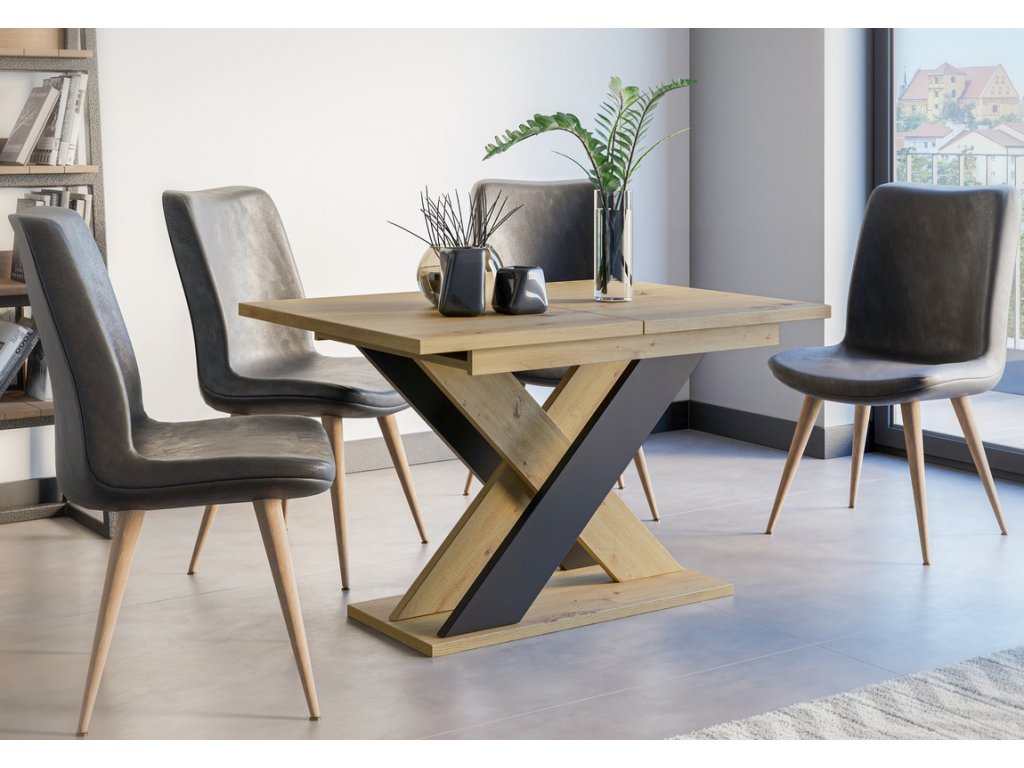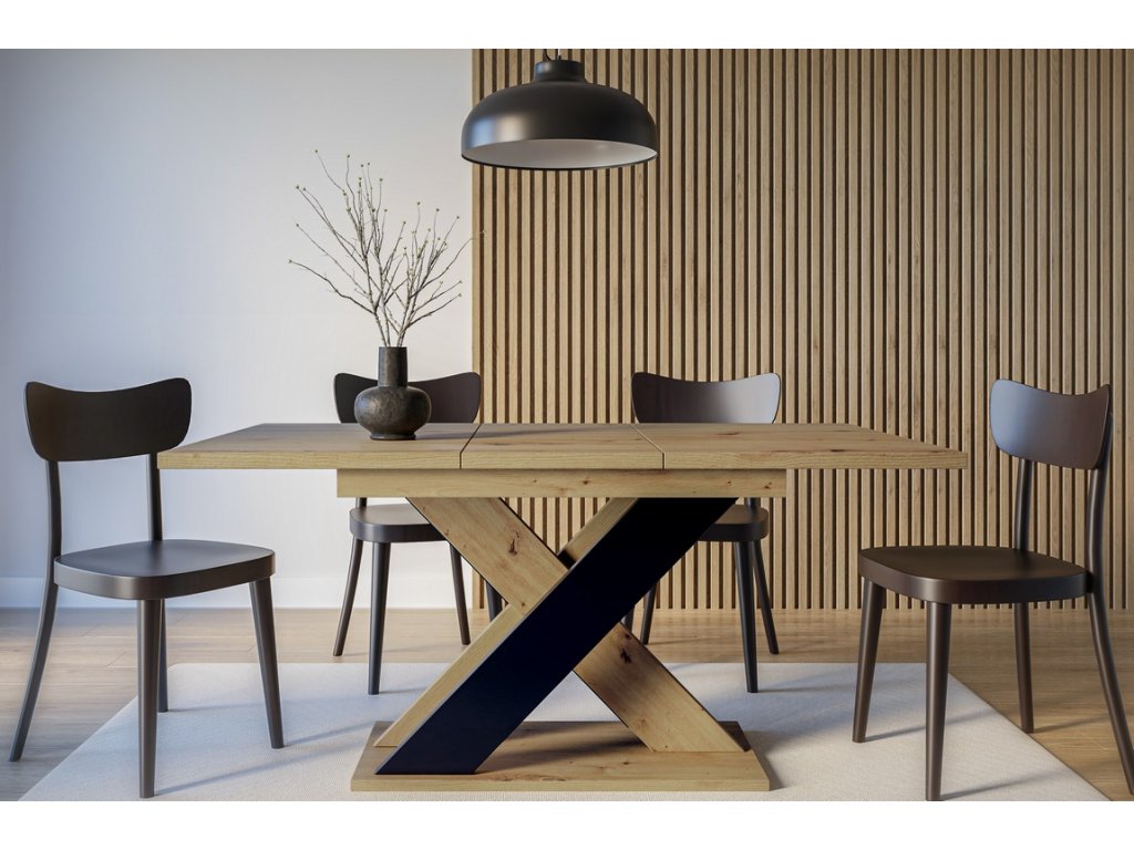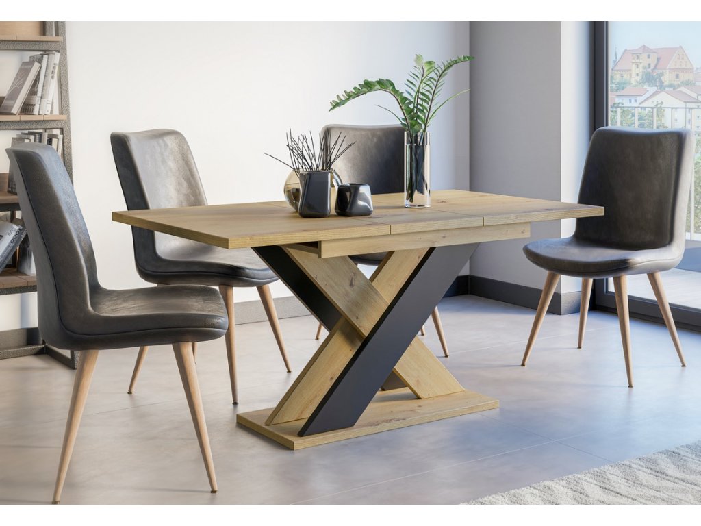 Jídelní rozkládací stůl je vyrobený z desky LTD v barevném provedení dub artisan/černá. Velikost plochy stolu po rozložení je 160 x 90 cm. Dodáváme v demontovaném stavu.Doplňkové parametry