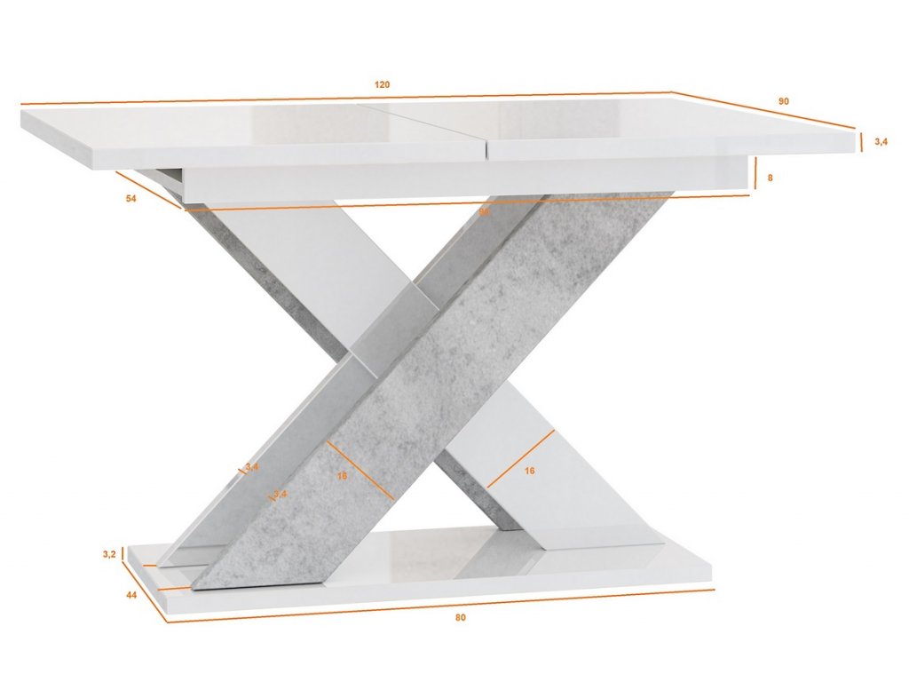 šířka: 120-170 cm | výška: 75 cm | hloubka: 80 cm Stylový jídelní stůl rozkládací. Tento stůl je vyroben z kvalitního lamina 16 mm opatřený ABS páskou v barvě matná bílá. Před...