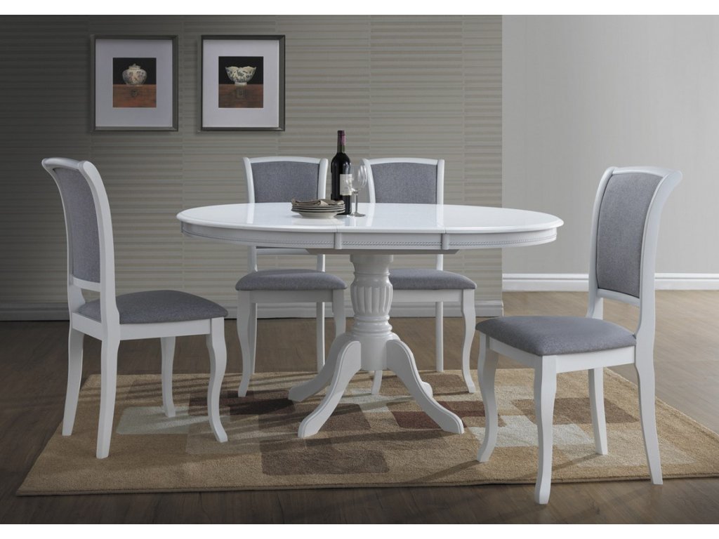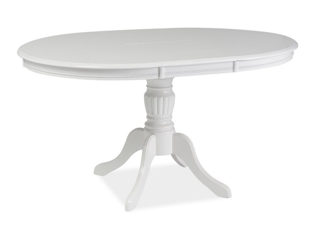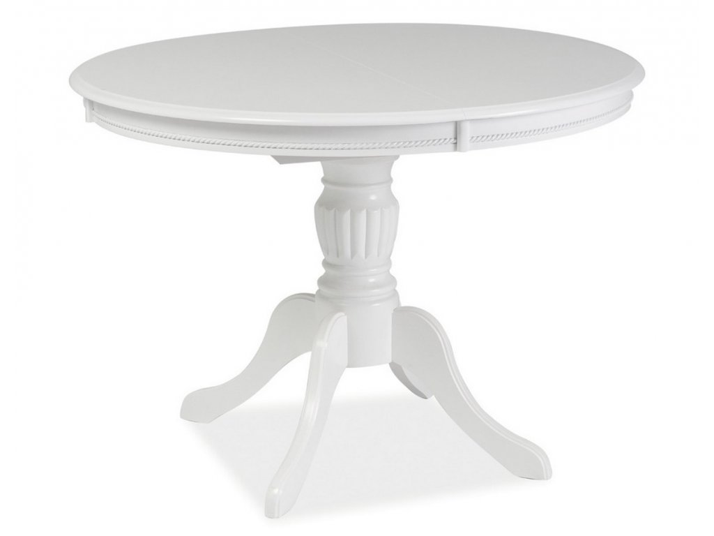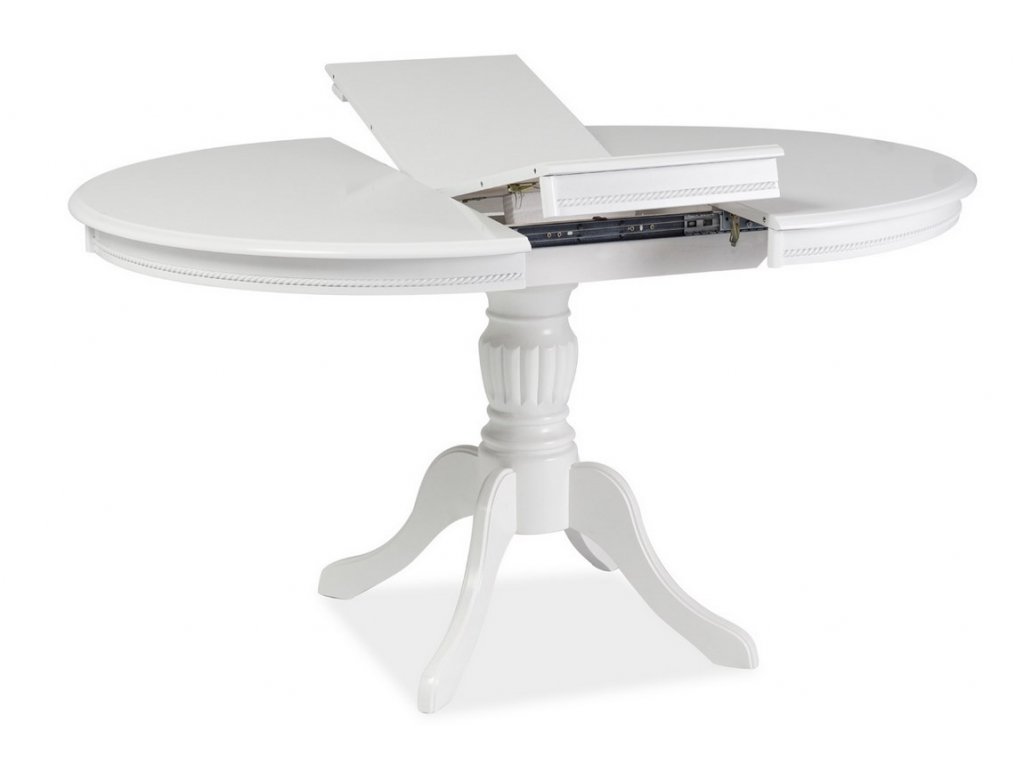Elegantní jídelní stůl v duchu provance. Zajímavý vzhled stolu vyzdvihují jemné tvary a dokonalé detaily. Tento kulatý stůl je vyroben z přírodního dřeva, deska je z kvalitní MDF v bílé barvě. Plocha před rozložením je 106 x 106 cm, po rozložení 106 x 141 cm. Výška stolu je 75 cm. Stůl je určený pro 4 až 6 osob. K tomuto stolu doporučujeme židle v naší nabídce.Doplňkové parametry