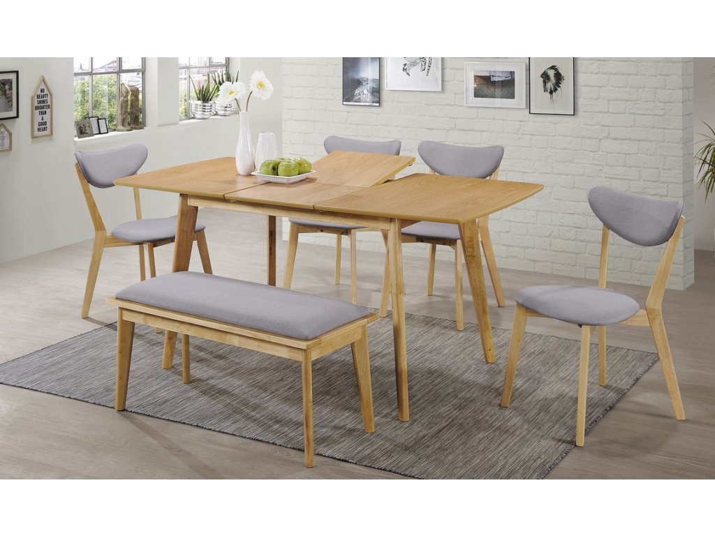 Rozkládací jídelní stůl v moderním stylu Scandinavian. Deska stolu je vyrobena z kvalitní MDF a přírodní dýhy, nohy stolu jsou z masivního dřeva. Plocha stolu před rozložením je 120 x 80 cm, plocha stolu po rozložení je 160 x 80 cm. Barevné provedení dub. K tomuto stolu doporučujeme židle v naší nabídce. Dodáváme v demontovaném stavu.Doplňkové parametry
