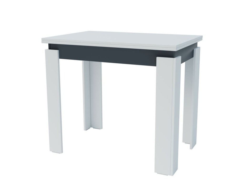 Rozkládací jídelní stůl v moderním provedení je vyroben z kvalitní LTD v barevné kombinaci matná bílá/šedý antracit. Plocha stolu před rozložením je 90x60 cm, plocha stolu po rozložení je 120x90 cm. Dodáváme v demontovaném stavu.Doplňkové parametry