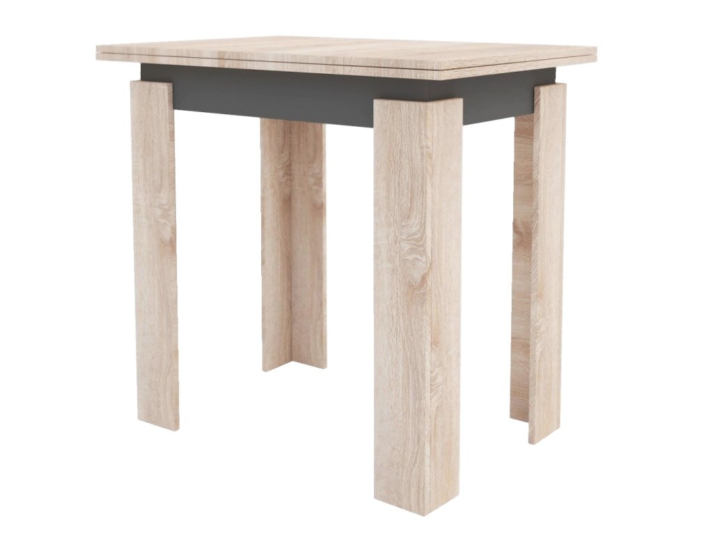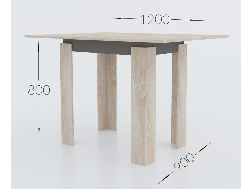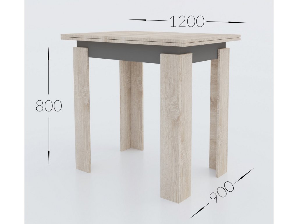 Rozkládací jídelní stůl v moderním provedení je vyroben z kvalitní LTD v kombinaci barev dub sonoma/šedý antracit. Plocha stolu před rozložením je 90x60 cm, plocha stolu po rozložení je 120x90 cm. Dodáváme v demontovaném stavu.Doplňkové parametry