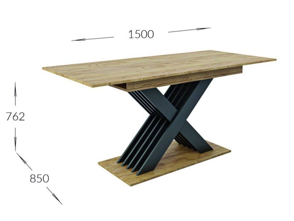 šířka: 150 cm | výška: 76 cm | hloubka: 90 cm Rozkládací jídelní stůl v moderním stylu bude ozdobou každého interiéru. Deska stolu je vyrobena z kvalitní MDF desky v kombinaci s...