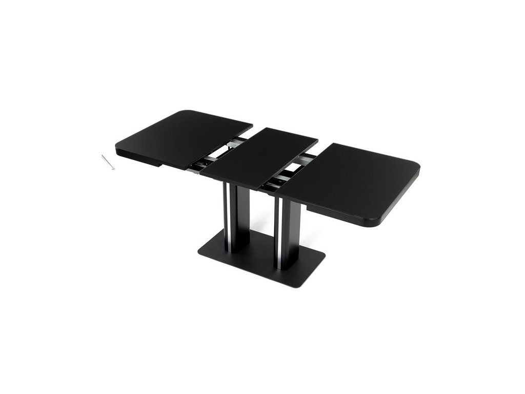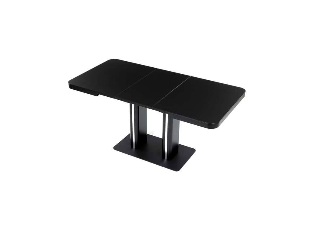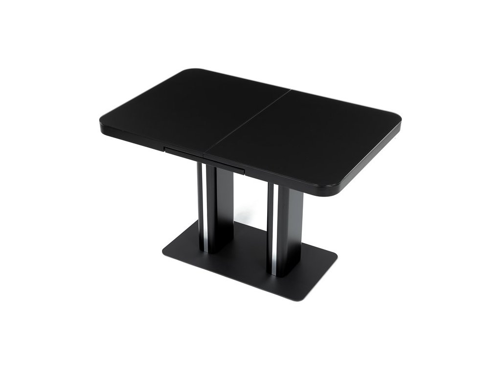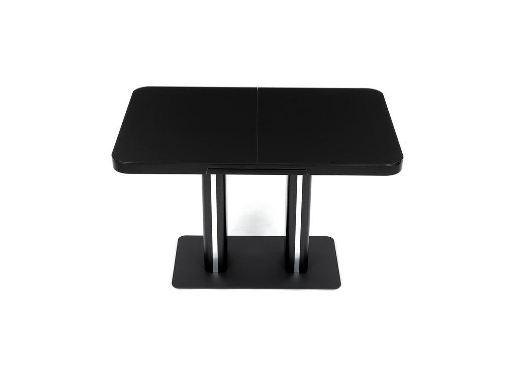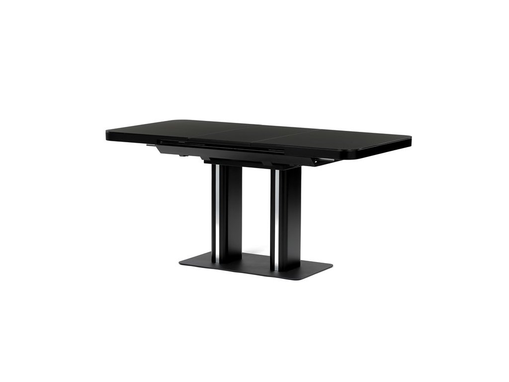 Jídelní rozkládací stůl HT-D1926 BK značky Autronic vyniká moderním designem s černou matnou povrchovou úpravou a praktickým automatickým rozkladem, který zvětšuje pracovní plochu z 120 na 160 cm. Deska stolu je vyrobena z tvrzeného černého skla, které zajišťuje vysokou odolnost proti poškrábání a snadnou údržbu, zatímco konstrukce nohou a rámu je z MDF materiálu s černým matným lakem, což přispívá k pevnosti a stabilitě celého stolu. Zaoblené rohy desky nejen zvyšují bezpečnost při používání, ale také dodávají elegantní vizuální dojem. Mechanismus rozkladu je navržen pro jednoduché a plynulé ovládání, což umožňuje rychlé přizpůsobení velikosti stolu podle potřeby. Stabilní podnož s dvojitými sloupky na podstavci zajišťuje rovnoměrné rozložení hmotnosti a vysokou nosnost, což činí stůl vhodným pro každodenní použití v domácnostech i menších kancelářských prostorách. Celková výška stolu je 75 cm, šířka 80 cm a délka v základním stavu 120 cm, která se po rozložení prodlouží o 40 cm.