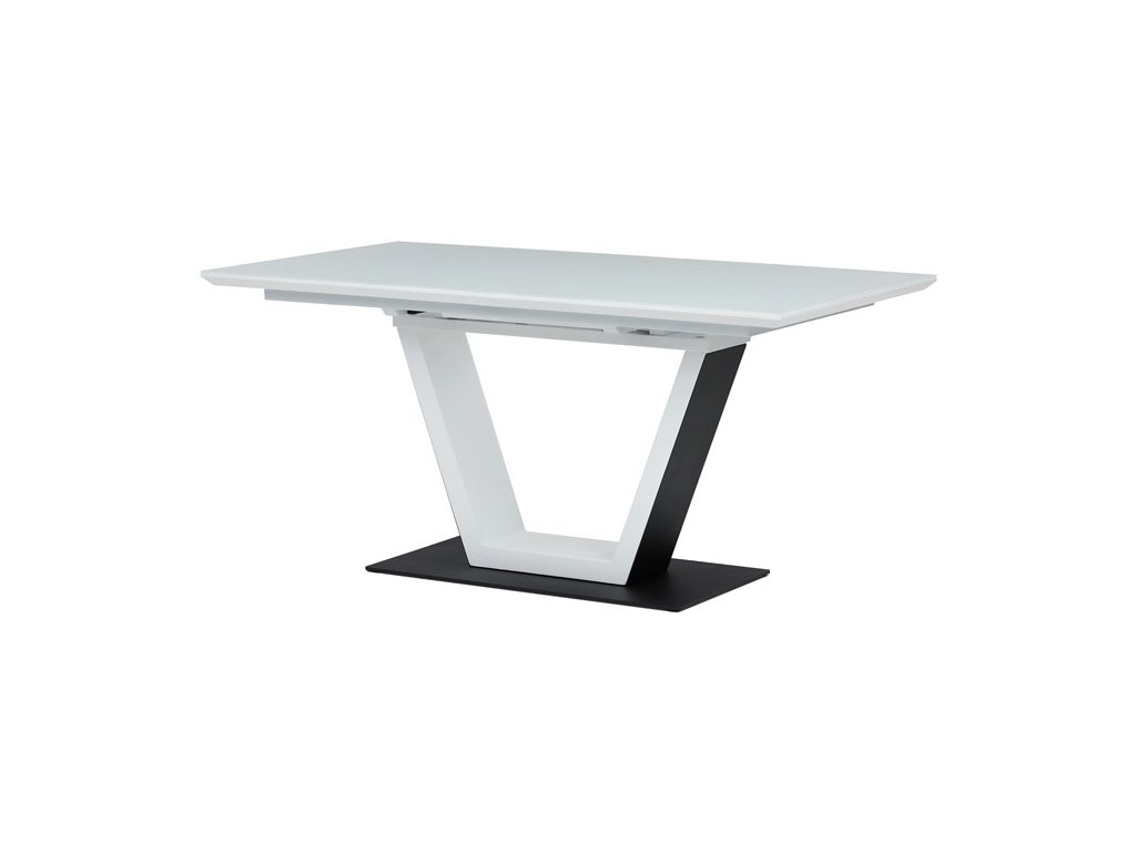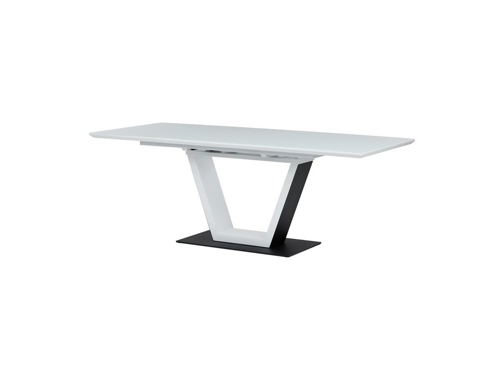 Luxusní rozkládací jídelní stůl značky Autronic v elegantní bílé barvě je ideální volbou pro moderní interiéry. Obdélníková deska z tvrzeného skla nabízí odolný a snadno udržovatelný povrch. Jedinečný design s centrální podnoží ve tvaru „V“ na stabilní základně dodává stolu výrazný charakter. Díky rozkládacímu mechanismu lze šířku stolu snadno přizpůsobit aktuálním potřebám, což z něj činí perfektní řešení pro rodinné večeře i společenské události. Skvělá kombinace stylu a praktičnosti.
