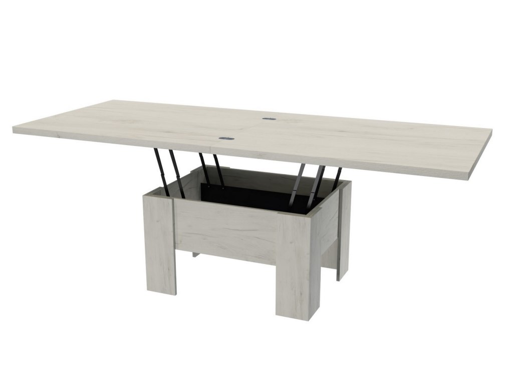 Elegantní konferenční stůl s funkcí jídelního stolu v moderním pojetí. Výhodou tohoto stolu je nastavitelná výška, kdy po zvýšení a rozkladu desky je možno ho použít ke stolování. Masivní deska je z LTD 32 mm opatřena ABS páskou 2 mm, otevírací mechanismus je vysoké kvality. Barevné provedení - dub bílý kraft. Plocha před rozložením je 80 x 100 cm, po rozložení 80 x 200 cm. Výška se po rozkladu z 53 cm zvýší na 78 cm. Dodáváme v demontovaném stavu.Doplňkové parametry