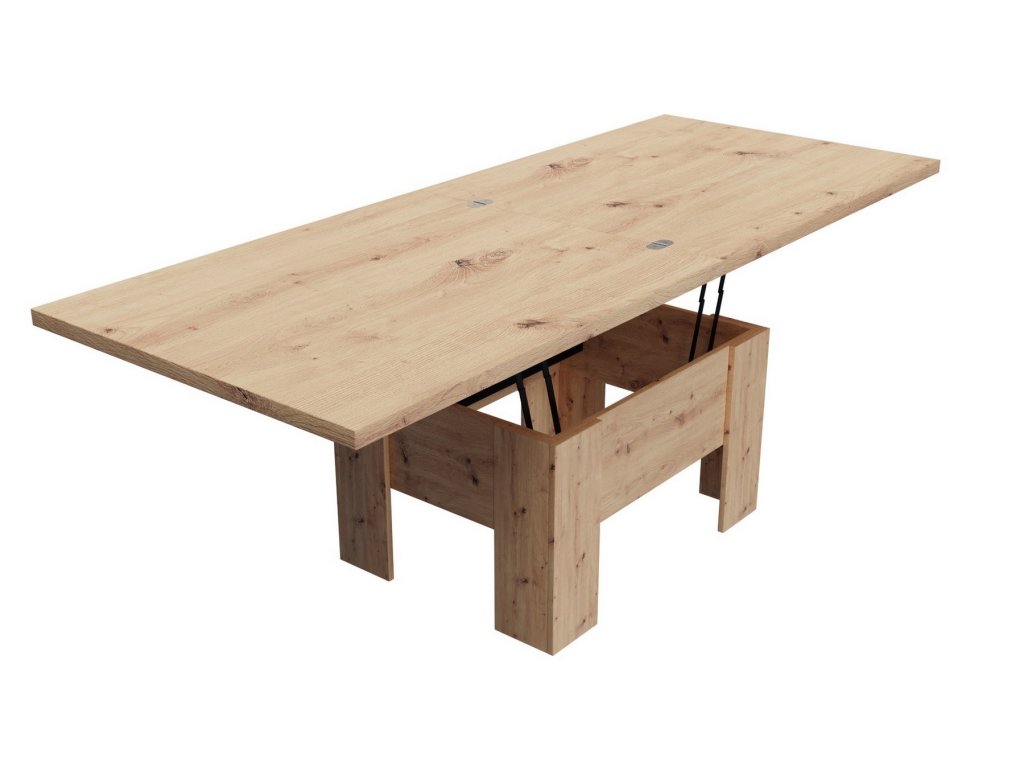 Elegantní konferenční stůl s funkcí jídelního stolu v moderním pojetí. Výhodou tohoto stolu je nastavitelná výška, kdy po zvýšení a rozkladu desky je možno ho použít ke stolování. Masivní deska je z LTD 32 mm opatřena ABS páskou 2 mm, otevírací mechanismus je vysoké kvality. Barevné provedení - dub artisan. Plocha před rozložením je 80 x 100 cm, po rozložení 80 x 200 cm. Výška se po rozkladu z 53 cm zvýší na 78 cm. Dodáváme v demontovaném stavu.Doplňkové parametry