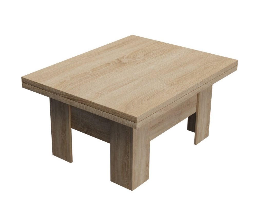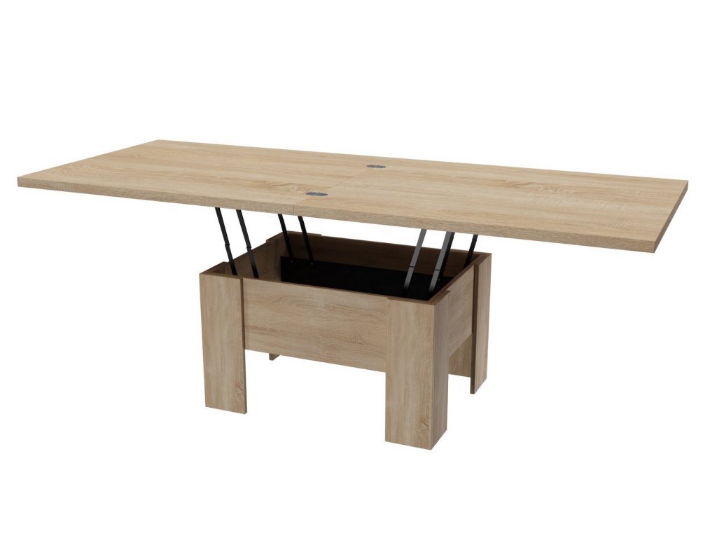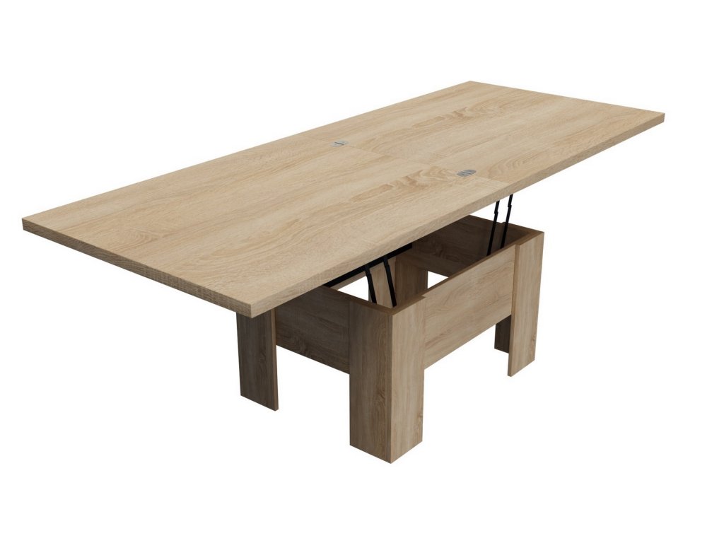 Elegantní konferenční stůl s funkcí jídelního stolu v moderním pojetí. Výhodou tohoto stolu je nastavitelná výška, kdy po zvýšení a rozkladu desky je možno ho použít ke stolování. Masivní deska je z LTD 32 mm opatřena ABS páskou 2 mm, otevírací mechanismus je vysoké kvality. Barevné provedení - dub sonoma. Plocha před rozložením je 80 x 100 cm, po rozložení 80 x 200 cm. Výška se po rozkladu z 53 cm zvýší na 78 cm. Dodáváme v demontovaném stavu.Doplňkové parametry