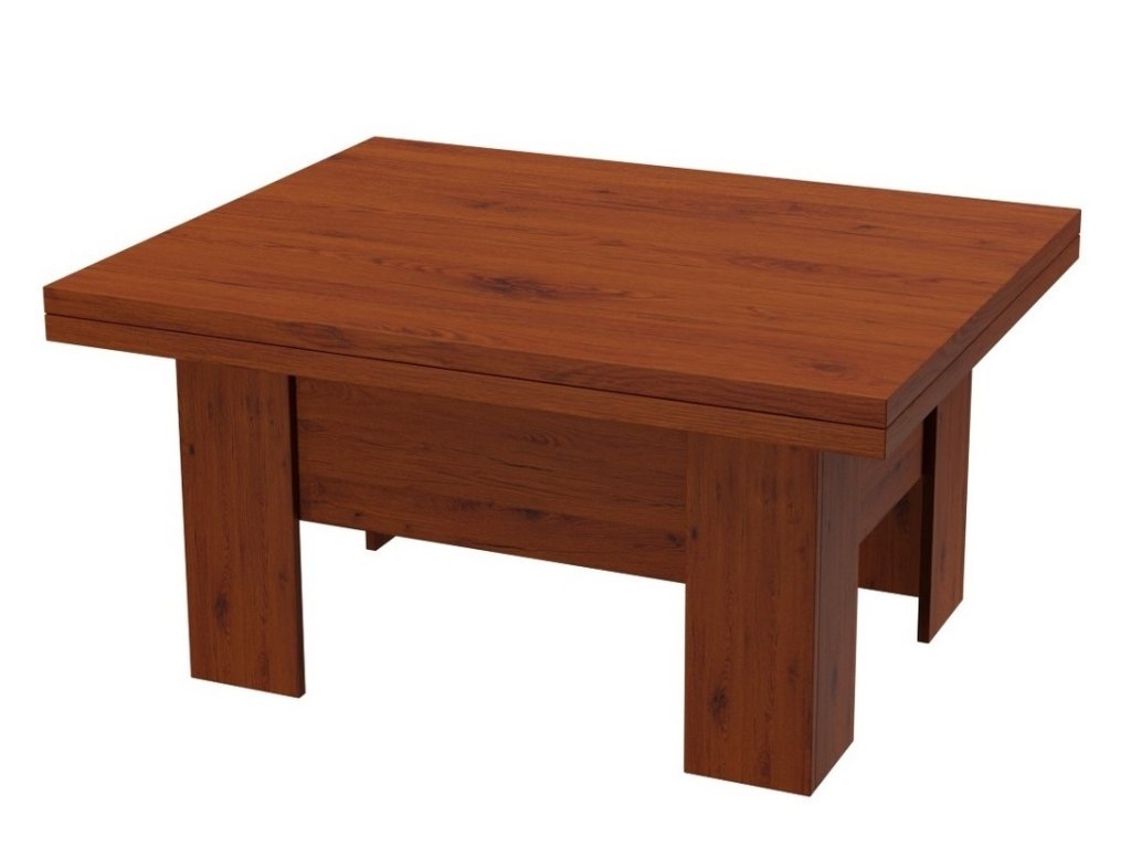 Elegantní konferenční stůl s funkcí jídelního stolu v moderním pojetí. Výhodou tohoto stolu je nastavitelná výška, kdy po zvýšení a rozkladu desky je možno ho použít ke stolování. Masivní deska je z LTD 32 mm opatřena ABS páskou 2 mm, otevírací mechanismus je vysoké kvality. Barevné provedení - dub stoletý. Plocha před rozložením je 80 x 100 cm, po rozložení 80 x 200 cm. Výška se po rozkladu z 53 cm zvýší na 78 cm. Dodáváme v demontovaném stavu.Doplňkové parametry