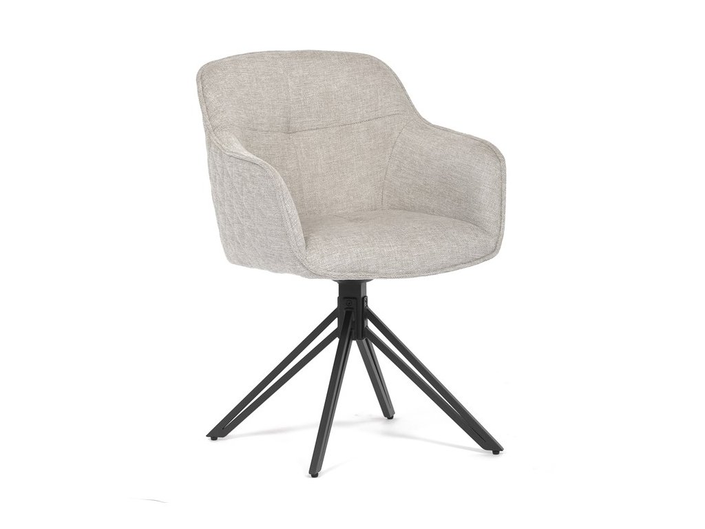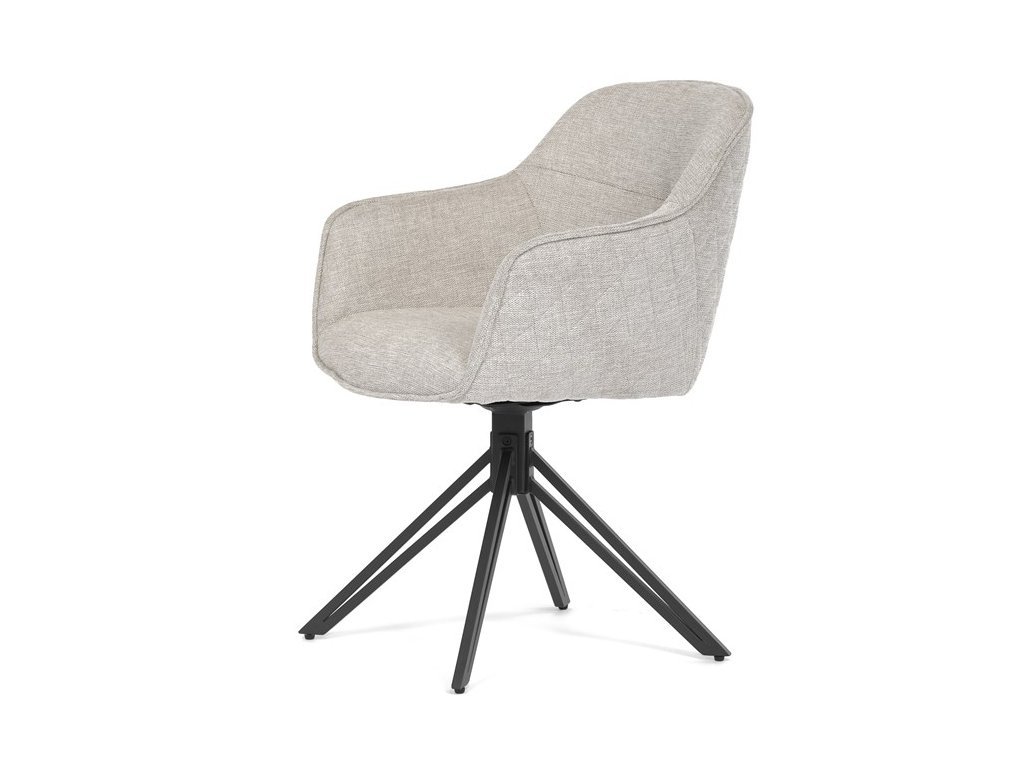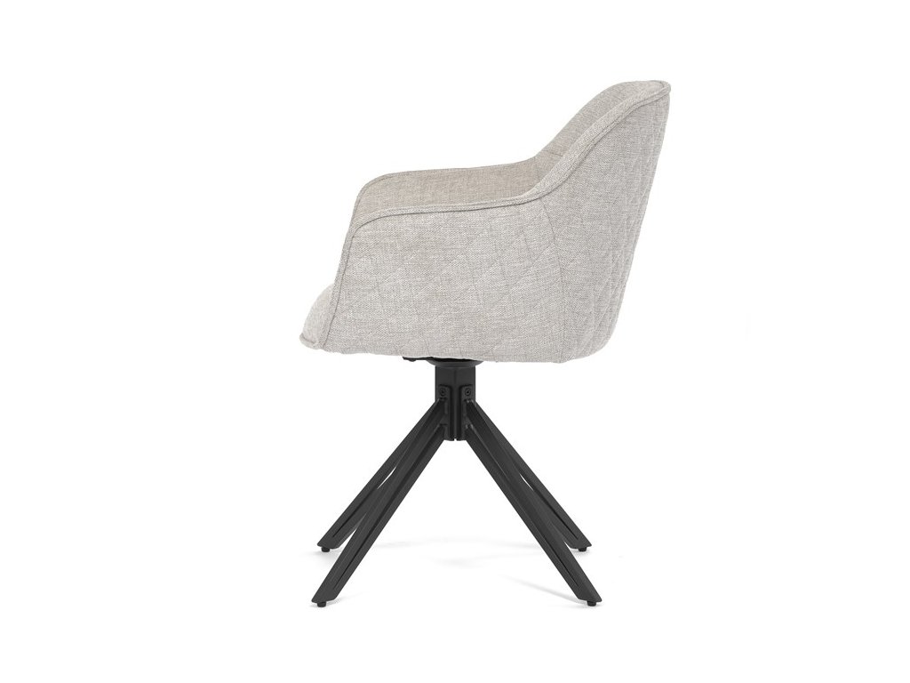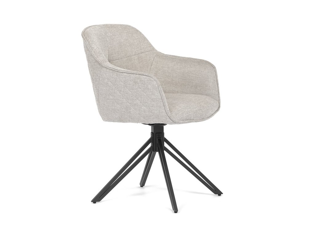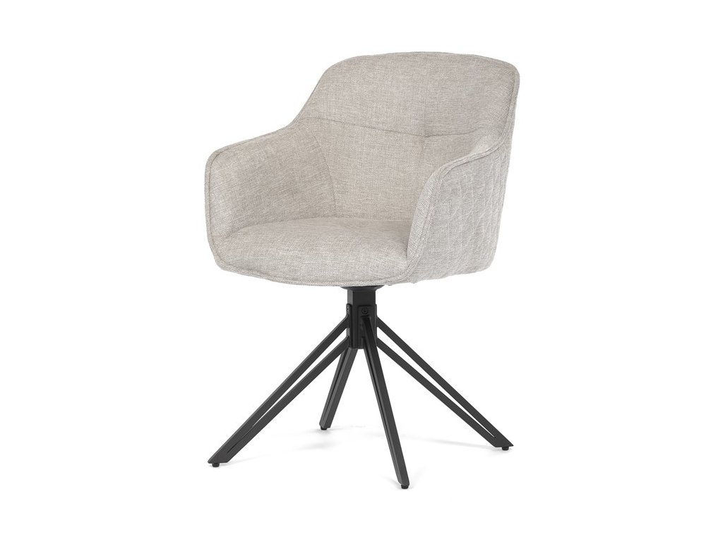 Jídelní a konferenční židle skořepinové konstrukce v zajímavém designu a ve velmi žádaném industriálním / loft stylu. Židle disponuje otočnou funkcí L90°/P90° s automaticky vratným mechanismem. Konstrukce sedáku i opěradla má pevnou kovovou kostru, potah je z jemně hrubé látky v béžovém odstínu. Polstrování je z pevné PU pěny, na sedáku v hustotě 28 kg/m3 a na opěradle 24 kg/m3. K pohodlí posedu poslouží nejen bohaté polstrování, ale i praktické a pohodlné opěrky rukou. Příjemný dekorativní prvky tvoří centrální čalounický vtah na opěradle a z vnější strany kosočtvercové prošívání. Nedílnou součástí je široká látková paspule v barvě židle, lemující celý obvod. Stabilitu zajišťuje designovaná čtyřnohá podnož s centrálním uchycením skořepiny. Konstrukce jednotlivých paprsků nohou je čtvercového průřezu, odlehčena středovým průzorem. Povrchová úprava je kvalitním práškovým nástřikem v černé matné barvě. Podnož židle je rektifikovatelná, na každém paprsku nohy je výškově nastavitelný kluzák s plastovým krytem. Ten zamezí možnosti poškození tvrdých podlah. Tento model je dobrou volbou pro Váš výběr do jídelních nebo obývacích prostor, hodí se i jako konferenční židle, kde ale musíte oželit možnosti jejího otáčení. Nosnost je do 120 kg, Základní rozměry – celková šíře 57 cm, celková hloubka 58 cm, celková výška 84 cm a výška sedu 50 cm. Montáž není složitá, zvládne ji i méně zručný nový majitel této židle.