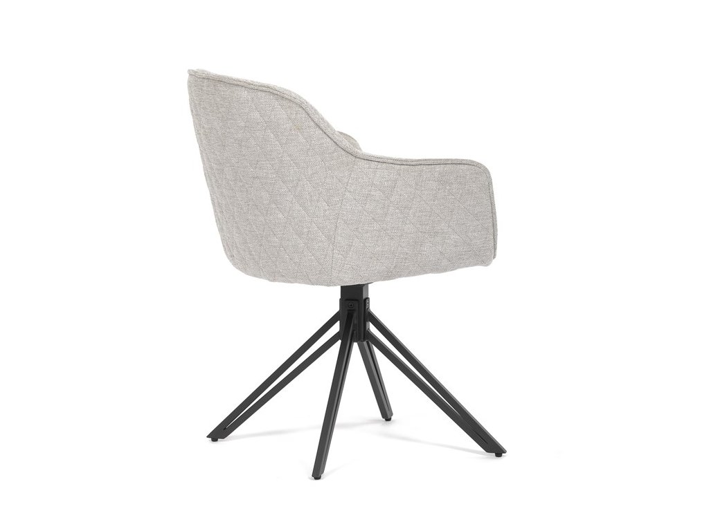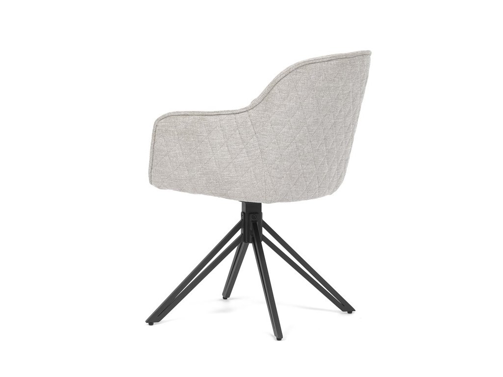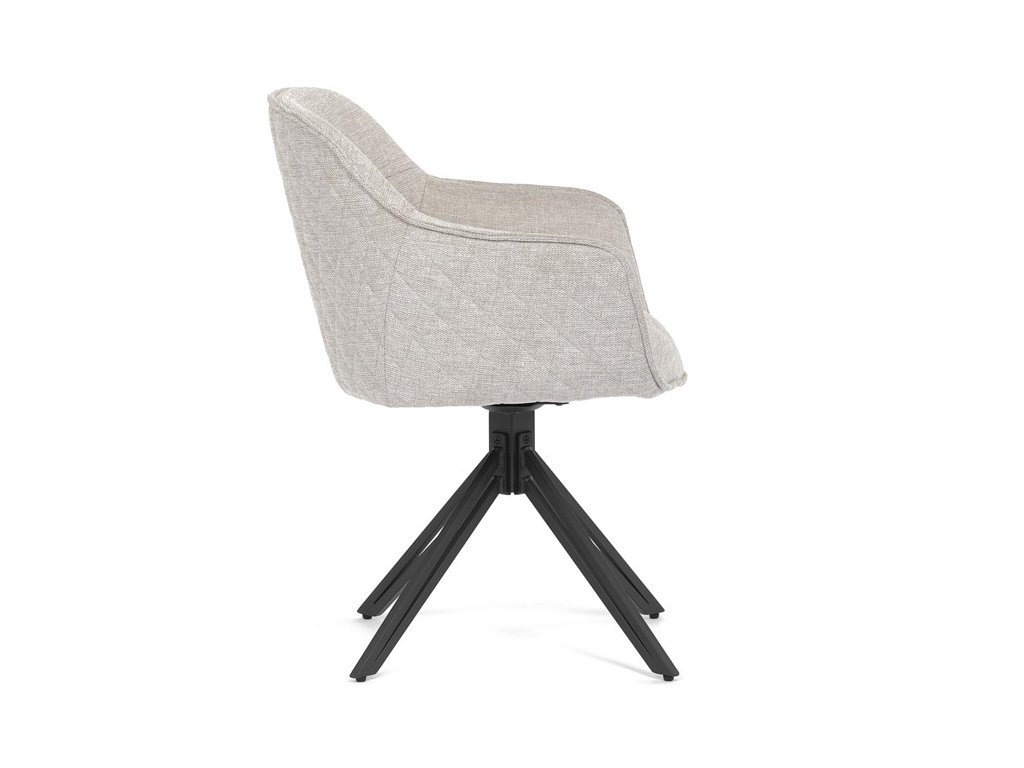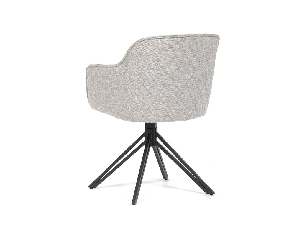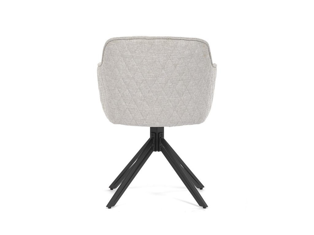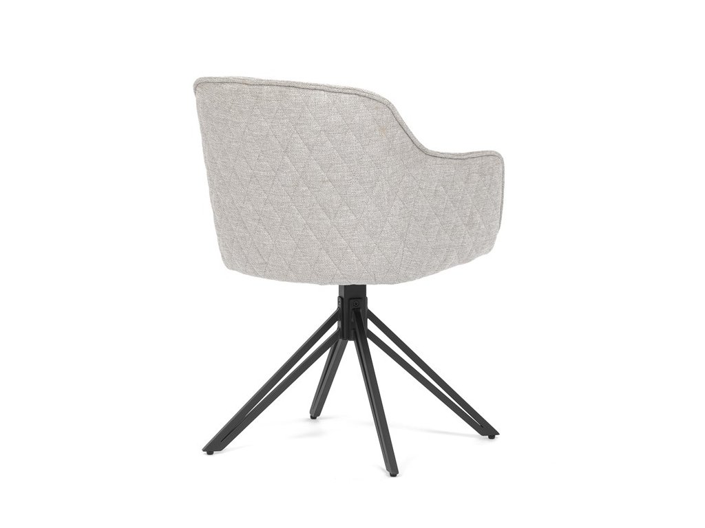 Jídelní a konferenční židle skořepinové konstrukce v zajímavém designu a ve velmi žádaném industriálním / loft stylu. Židle disponuje otočnou funkcí L90°/P90° s automaticky vratným mechanismem. Konstrukce sedáku i opěradla má pevnou kovovou kostru, potah je z jemně hrubé látky v béžovém odstínu. Polstrování je z pevné PU pěny, na sedáku v hustotě 28 kg/m3 a na opěradle 24 kg/m3. K pohodlí posedu poslouží nejen bohaté polstrování, ale i praktické a pohodlné opěrky rukou. Příjemný dekorativní prvky tvoří centrální čalounický vtah na opěradle a z vnější strany kosočtvercové prošívání. Nedílnou součástí je široká látková paspule v barvě židle, lemující celý obvod. Stabilitu zajišťuje designovaná čtyřnohá podnož s centrálním uchycením skořepiny. Konstrukce jednotlivých paprsků nohou je čtvercového průřezu, odlehčena středovým průzorem. Povrchová úprava je kvalitním práškovým nástřikem v černé matné barvě. Podnož židle je rektifikovatelná, na každém paprsku nohy je výškově nastavitelný kluzák s plastovým krytem. Ten zamezí možnosti poškození tvrdých podlah. Tento model je dobrou volbou pro Váš výběr do jídelních nebo obývacích prostor, hodí se i jako konferenční židle, kde ale musíte oželit možnosti jejího otáčení. Nosnost je do 120 kg, Základní rozměry – celková šíře 57 cm, celková hloubka 58 cm, celková výška 84 cm a výška sedu 50 cm. Montáž není složitá, zvládne ji i méně zručný nový majitel této židle.