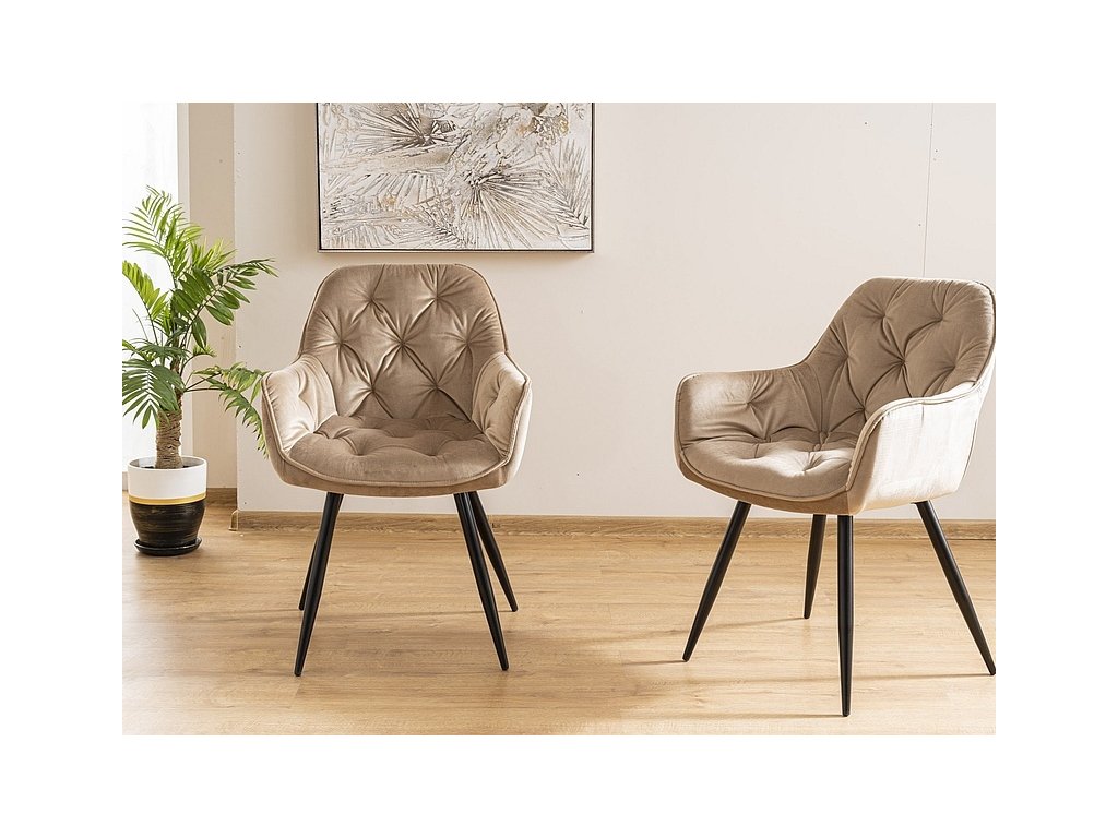 Atraktivní čalouněná židle - křeslo vhodná nejen do Vaší jídelny a kuchyně, ale také do kanceláře, čekárny či recepce. Konstrukce je z kovu černé barvy. Čalounění židle je z potahové látky aksamit (BLUVEL 28) ve béžové barvě. Dodáváme v demontovaném stavu.Doplňkové parametry