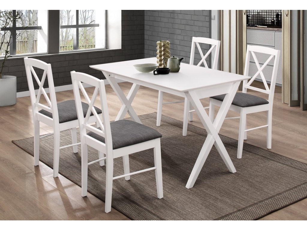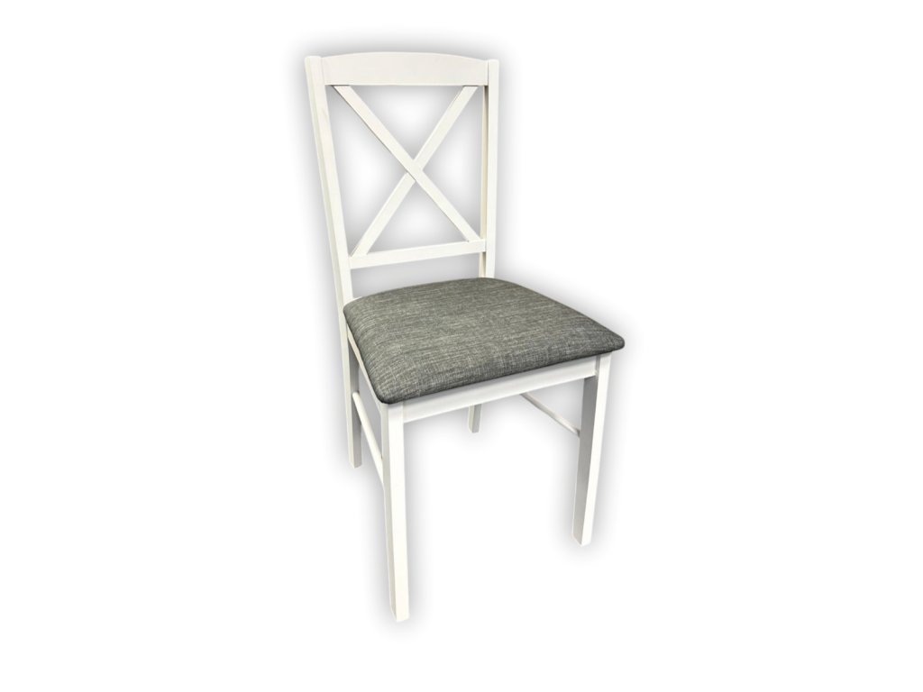 Stylová čalouněná židle v moderním stylu. Konstrukce je z kvalitního přírodního dřeva v bílé barvě. Tloušťka zadní nohy je 22 mm, tloušťka přední nohy je 24 x 40 mm, šířka lišty pod sedákem 60 mm, průměr zpevňovací lišty mezi nohama 15 mm. Sedák díky pěnové výplni ( 26 mm v nejvyšším bodě ) zajišťuje pohodlné sezení. Čalounění sedáku je vyrobeno z potahové látky v barvě tmavé šedé. Pohodlí a elegance do každého interiéru.Doplňkové parametry