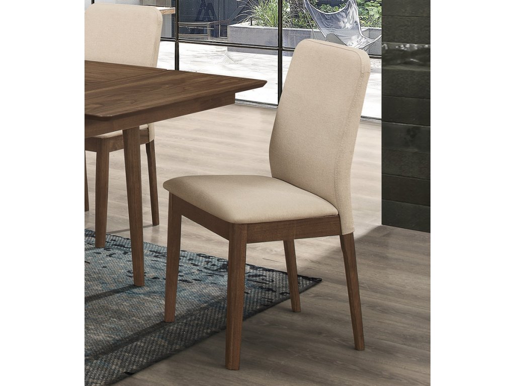 Stylová čalouněná židle v moderním stylu. Konstrukce je z kvalitního přírodního dřeva v odstínu vlašský ořech. Čalounění je vyrobeno z potahové látky v béžové barvě. Pohodlí a elegance do každého interiéru. Výška sedu cca 44cm. Dodáváme v demontovaném stavu. DOPRODEJ!Doplňkové parametry