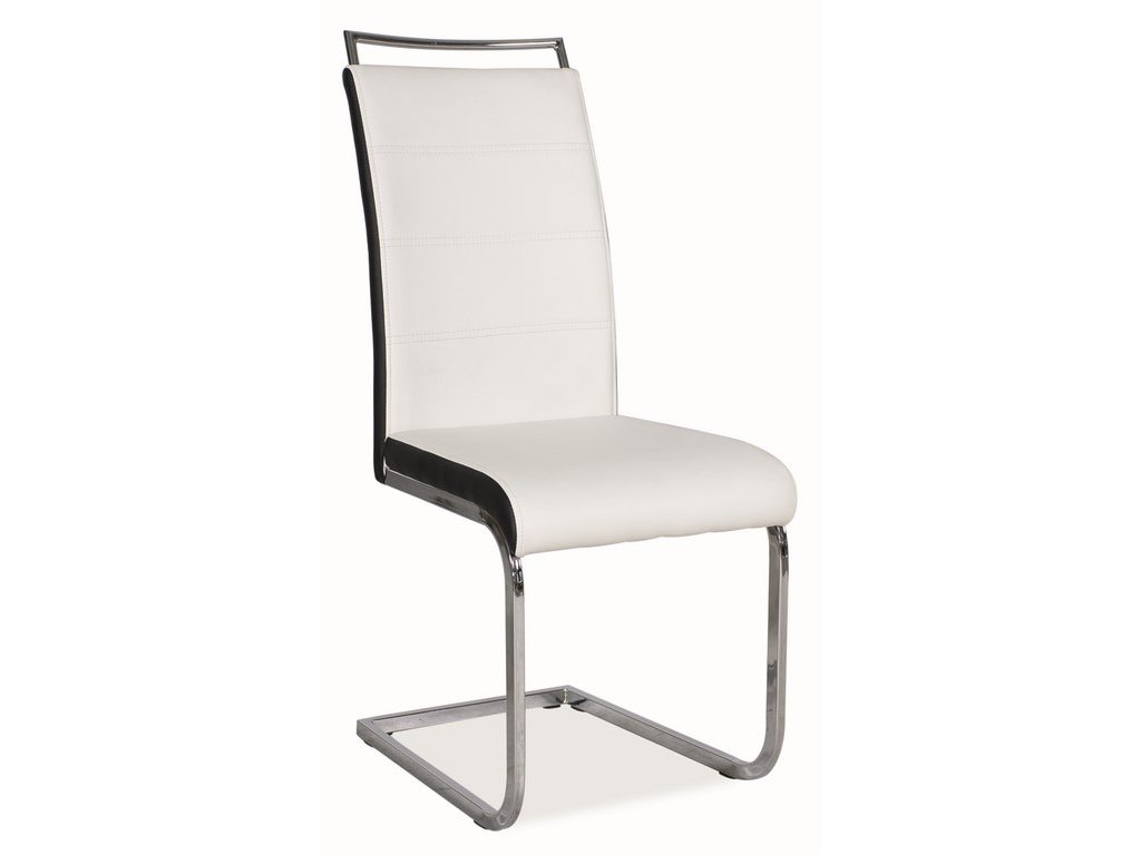 Elegantní čalouněná židle pohupovací s ergonomickým tvarem. Zajímavě řešená kovová konstrukce je pochromovaná, čalounění z ekokůže je v barvě bílá/černá. Židle se hodí ke stolům, které naleznete v naší uvedené nabídce.Doplňkové parametry