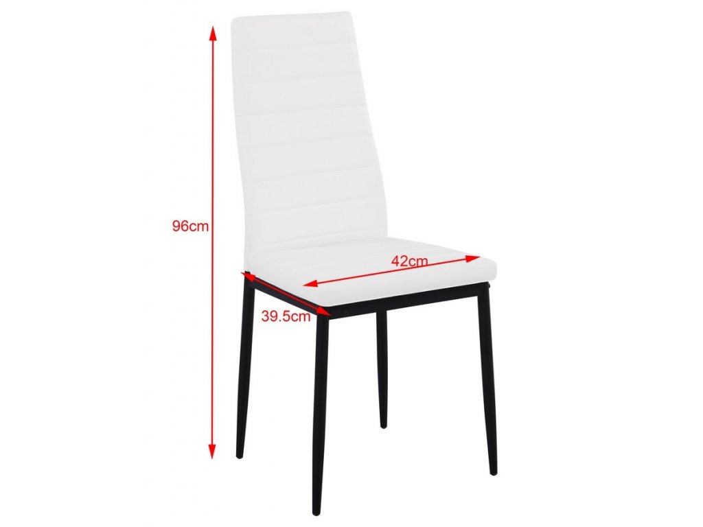 Elegantní čalouněná židle s prodlouženým opěradlem pro pohodlné sezení. Kovová konstrukce je v barvě černé, čalounění je vyrobeno z ekokůže bílé barvy. Výška sedu je 48,5 cm, hloubka sedu 41. Pohodlí a elegance do každého interiéru. Dodáváme v demontovaném stavu.Doplňkové parametry
