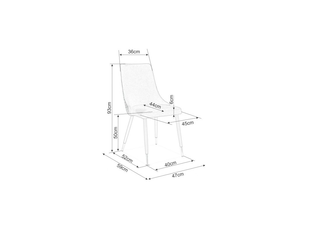 Čalouněná jídelní židle vhodná nejen do Vaší jídelny a kuchyně, ale také do kanceláře, čekárny či recepce. Nohy jsou z kovu v černé a zlaté barvě, čalounění sedáku je z potahové látky (aksamit Bluvel 14) v šedé barvě. Pohodlí a elegance pro každý interiér.Doplňkové parametry
