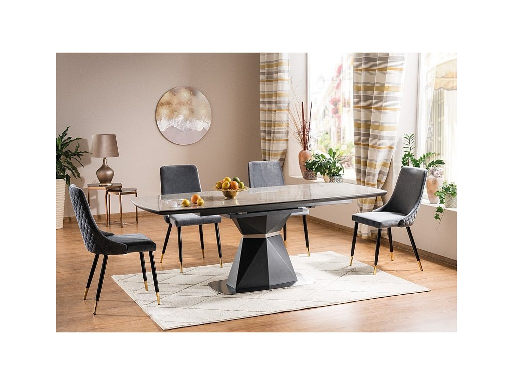 šířka: 136-210 cm | výška: 76 cm | hloubka: 90 cm Moderní rozkládací jídelní stůl v praktickém provedení. Deska je vyrobena z kvalitní LTD, nohy jsou z MDF. Deska obsahuje ABS...
