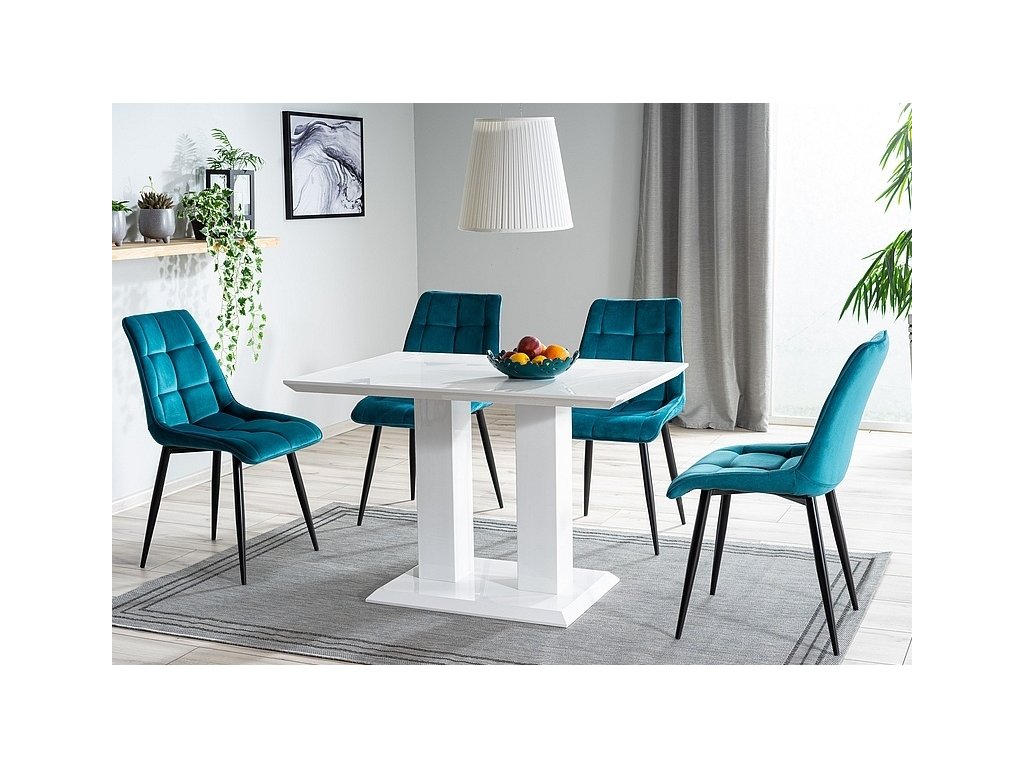 šířka: 100 cm | výška: 75 cm | hloubka: 60 cm Moderní jídelní stůl v elegantním a praktickém provedení. Nohy stolu jsou vyrobeny z kovu, lakované bílou barvou, deska je z...