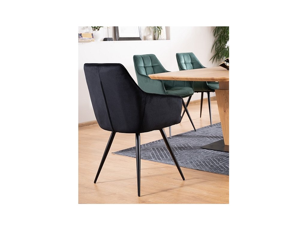 Atraktivní, velice pohodlná čalouněná židle vhodná nejen do Vaší jídelny a kuchyně, ale také do kanceláře, čekárny či recepce. Kovová konstrukce je lakovaná černou matnou barvou, čalounění je z látky bluvel v černé barvě s elegantním prošíváním. Židle se hodí ke stolům, které najdete v naší uvedené nabídce.Doplňkové parametry