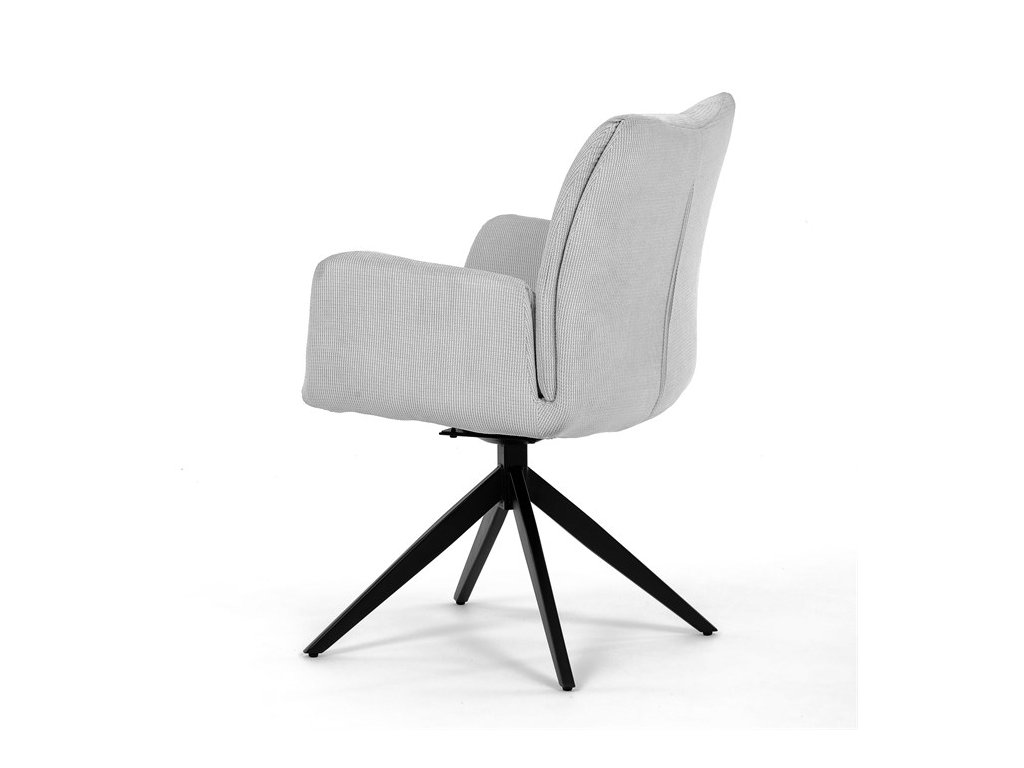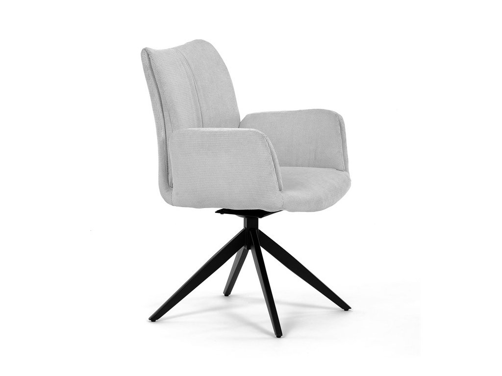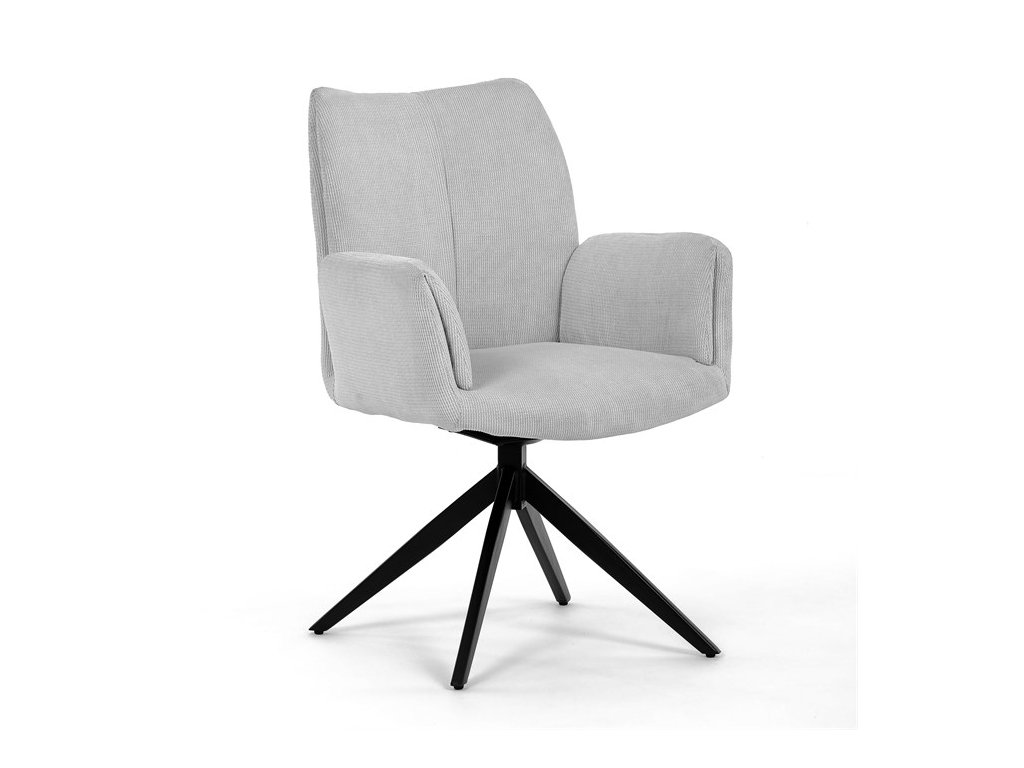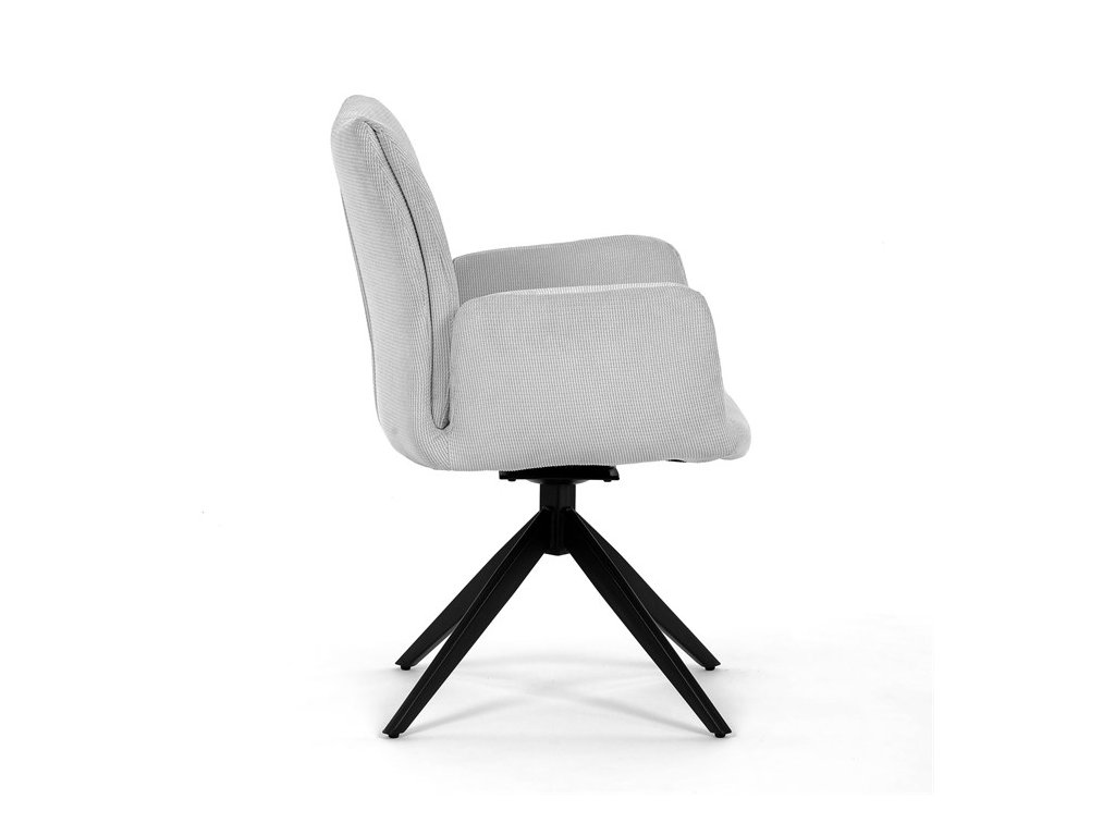 Nohy židle Autronic, usazené na robustní středové základně, mají povrchovou úpravu z výrazného černého kovu, který nápadně kontrastuje s měkkým čalouněným sedákem. Tato sofistikovaná konstrukce zajišťuje stabilitu a odolnost, takže je vhodná pro sezení téměř u každého pracovního nebo jídelního stolu. Moderní styl židle podtrhuje praktická funkce otáčení o 90°, která umožňuje snadný pohyb a všestrannost v jakémkoli pracovním prostoru nebo jídelně.
