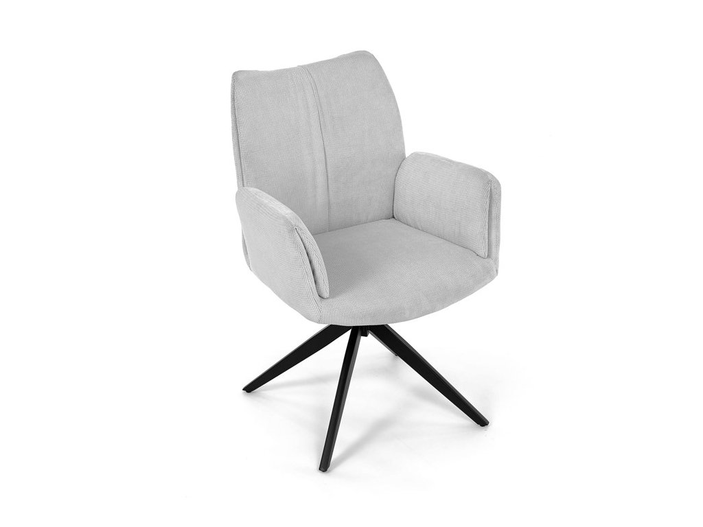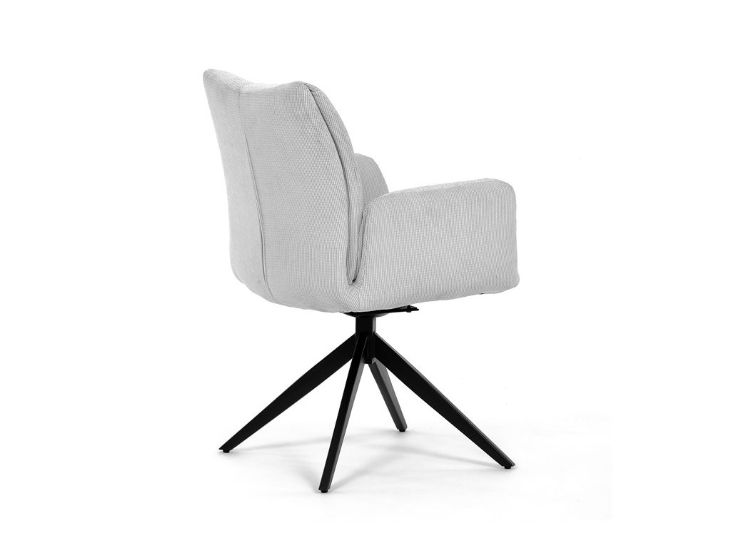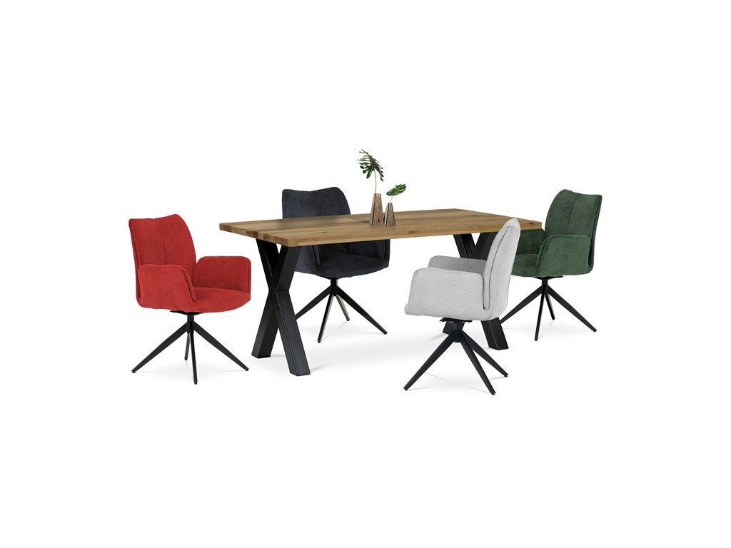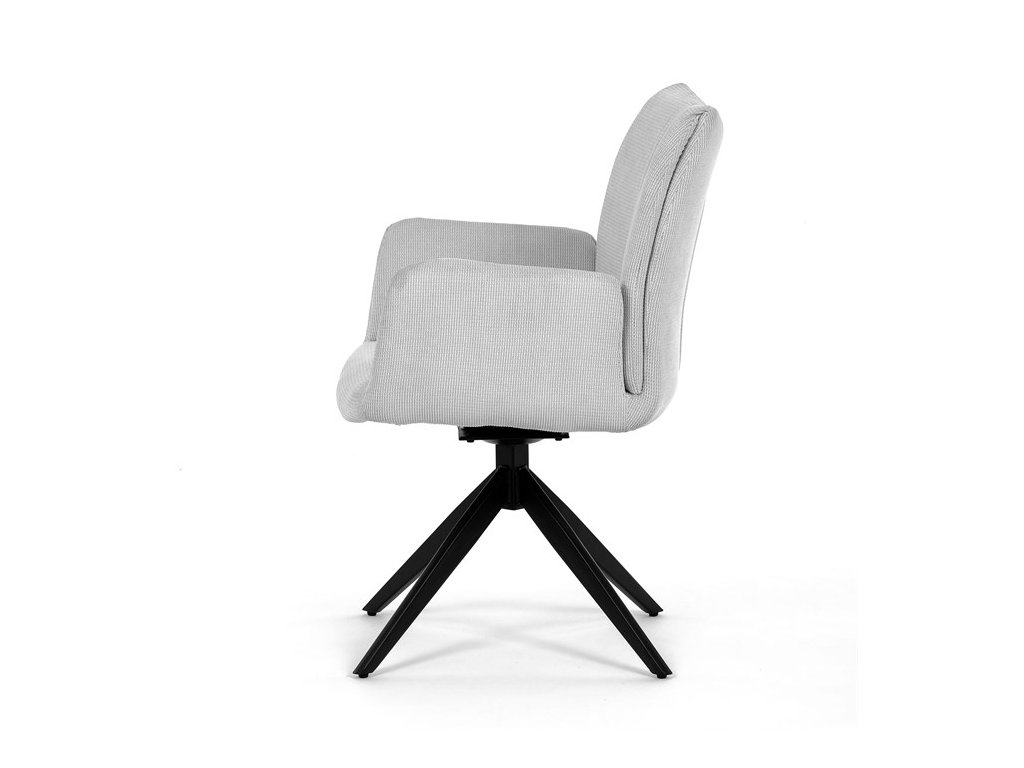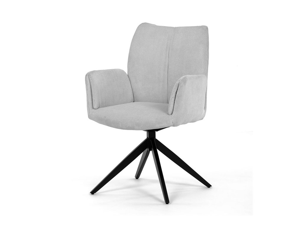 Nohy židle Autronic, usazené na robustní středové základně, mají povrchovou úpravu z výrazného černého kovu, který nápadně kontrastuje s měkkým čalouněným sedákem. Tato sofistikovaná konstrukce zajišťuje stabilitu a odolnost, takže je vhodná pro sezení téměř u každého pracovního nebo jídelního stolu. Moderní styl židle podtrhuje praktická funkce otáčení o 90°, která umožňuje snadný pohyb a všestrannost v jakémkoli pracovním prostoru nebo jídelně.