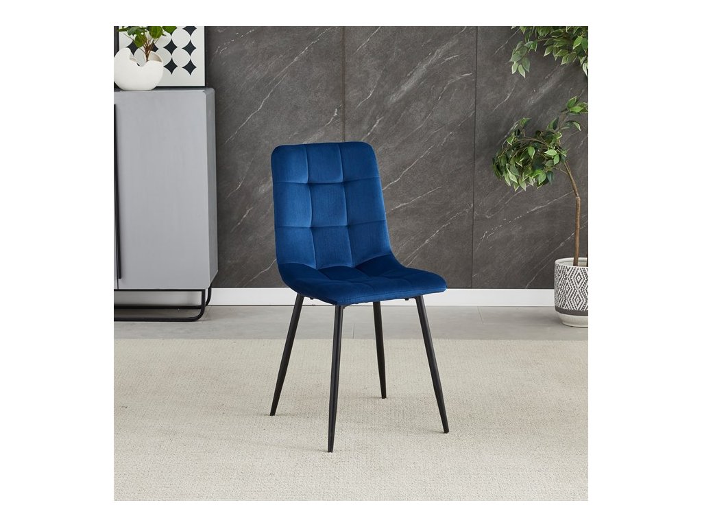 Jídelní židle značky Autronic v elegantní modré barvě je ideální volbou pro stylové interiéry. Čalounění ze sametové látky působí luxusně a zajišťuje pohodlí při sezení. Decentní prošívání zdůrazňuje precizní zpracování, zatímco stabilní černé kovové nohy podtrhují minimalistický vzhled s industriálním nádechem. Díky kvalitnímu polstrování z PU pěny je vhodná pro každodenní stolování i delší posezení. Tato židle přináší harmonii mezi funkčností a moderním designem, který oživí každou jídelnu.