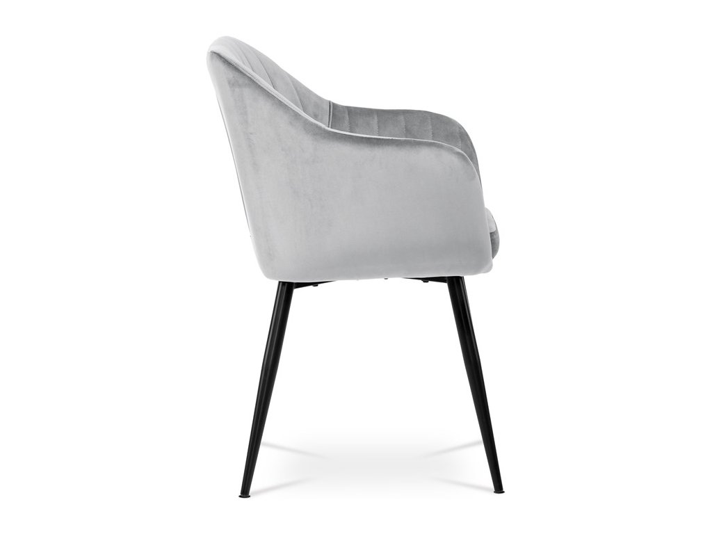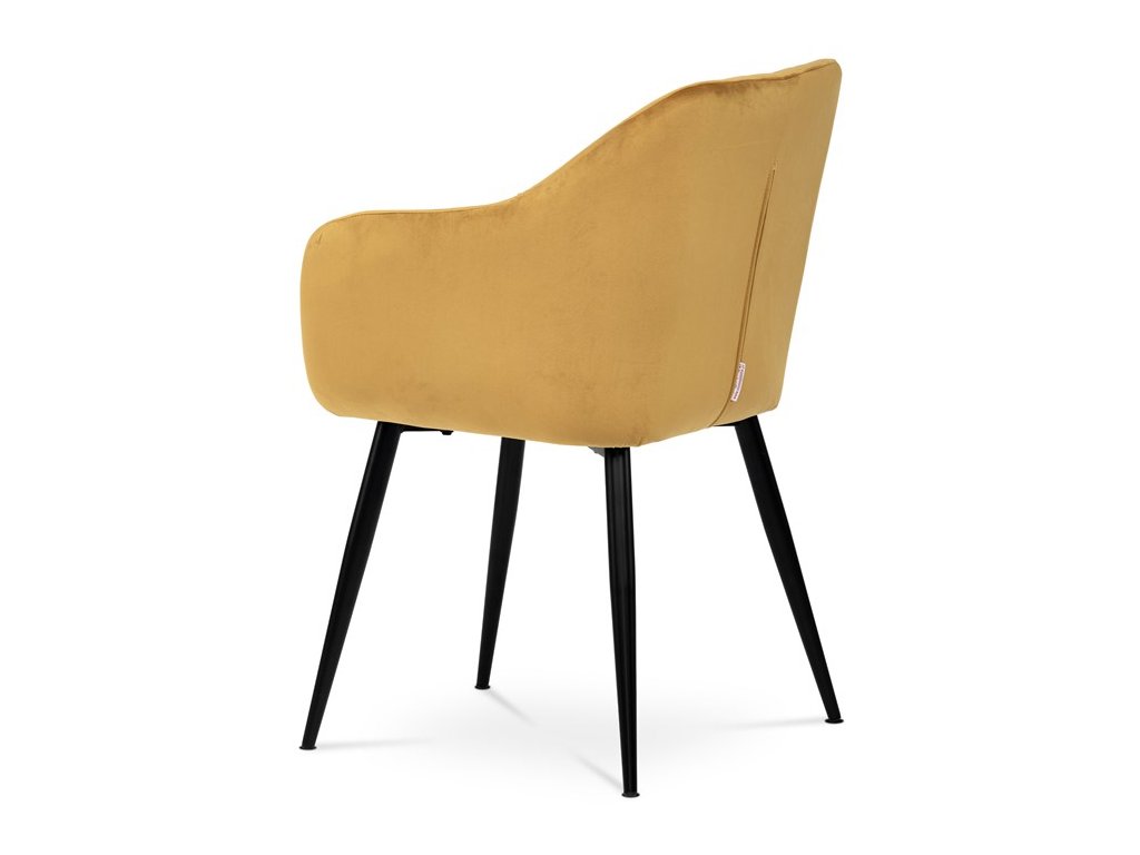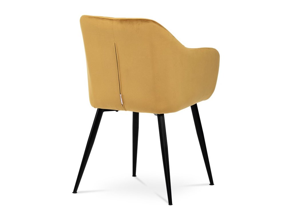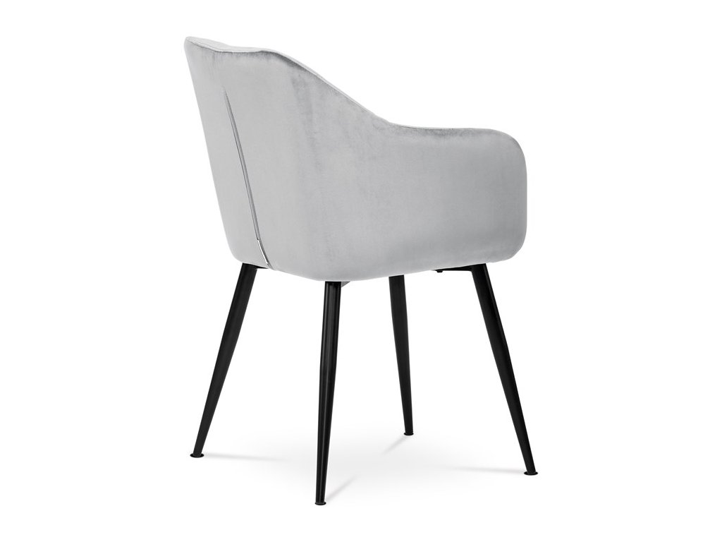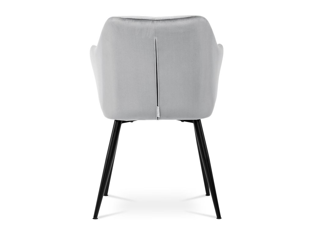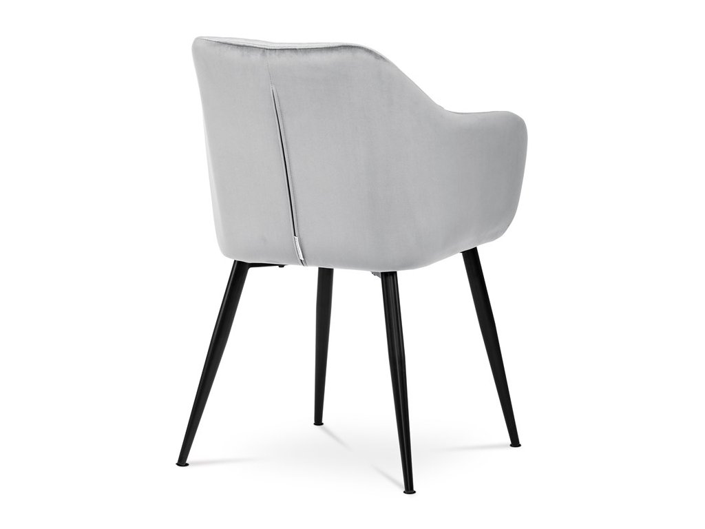 Dokonalý design, industriální styl a perfektní pohodlí je pro tuto židli samozřejmostí. Skořepina sedáku i opěradla má pevnou kovovou kostru, potah z velmi kvalitní sametové látky v matném provedení a nadčasovém a luxusním odstínu černé. Polstrování je z PU pěny. Bonusem ke zvýšení pohodlí posedu je 8 cm zvýšený a extra polstrovaný sedák a praktické pohodlné opěrky s opěrnou plochou ve výšce 69 cm od podlahy. Příjemný dekorativní prvek vytvářejí svislá prošití vnitřních částí opěradla i boků. Použitá látka je velmi odolná a perfektně se čistí. Stabilitu židle zajišťují čtyři kónické kovové nohy s kvalitním práškovým nástřikem v černé matné barvě. Ukončené jsou černými plastovými kluzáky, zabraňující poškození tvrdých povrchů podlah. Nohy mají kruhový průřez o průměru od 2 do 3,5 cm v horní části. Všechna tato plus produkují z tohoto modelu skvělou volbu pro Váš výběr zařízení jídelních a nebo obývacích prostor, ale skvěle se hodí i jako konferenční židle do zasedacích místností. Nosnost židle je až 120 kg. Základní rozměry jsou – celková šíře 58 cm, celková hloubka 57 cm, celková výška 84 cm, výška sedu 52 cm a hloubka sedu 43 cm.
