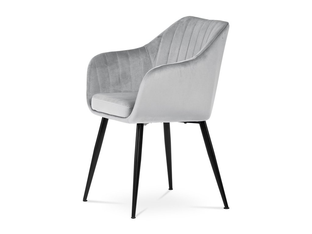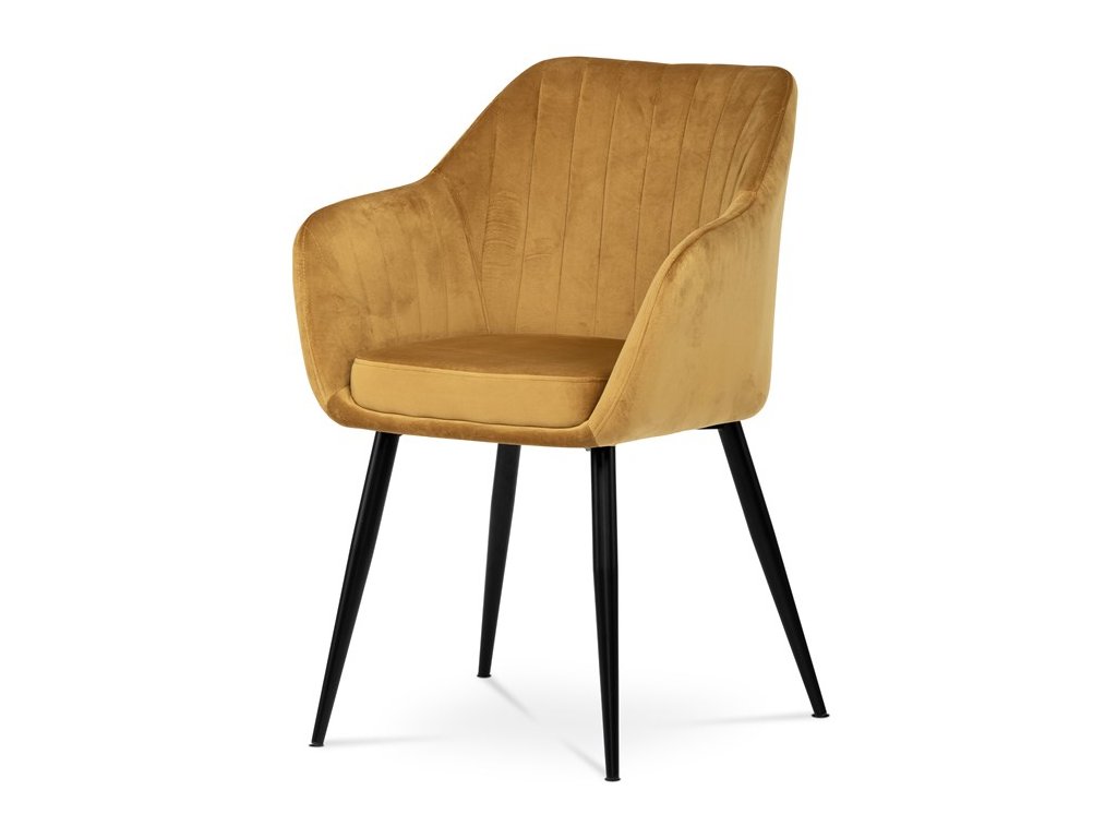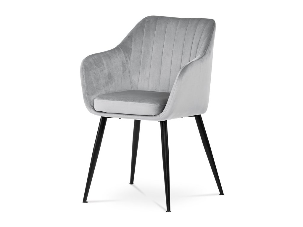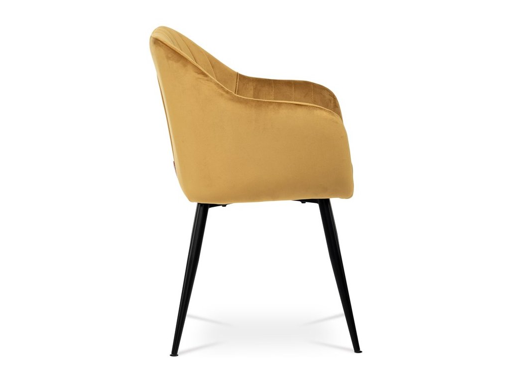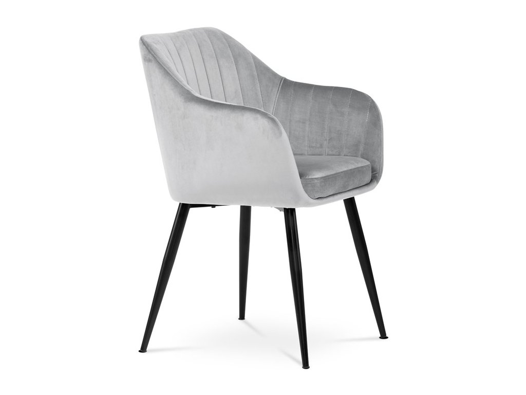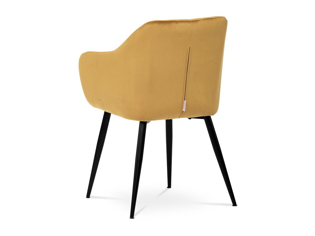 Dokonalý design, industriální styl a perfektní pohodlí je pro tuto židli samozřejmostí. Skořepina sedáku i opěradla má pevnou kovovou kostru, potah z velmi kvalitní sametové látky v matném provedení a nadčasovém a luxusním odstínu černé. Polstrování je z PU pěny. Bonusem ke zvýšení pohodlí posedu je 8 cm zvýšený a extra polstrovaný sedák a praktické pohodlné opěrky s opěrnou plochou ve výšce 69 cm od podlahy. Příjemný dekorativní prvek vytvářejí svislá prošití vnitřních částí opěradla i boků. Použitá látka je velmi odolná a perfektně se čistí. Stabilitu židle zajišťují čtyři kónické kovové nohy s kvalitním práškovým nástřikem v černé matné barvě. Ukončené jsou černými plastovými kluzáky, zabraňující poškození tvrdých povrchů podlah. Nohy mají kruhový průřez o průměru od 2 do 3,5 cm v horní části. Všechna tato plus produkují z tohoto modelu skvělou volbu pro Váš výběr zařízení jídelních a nebo obývacích prostor, ale skvěle se hodí i jako konferenční židle do zasedacích místností. Nosnost židle je až 120 kg. Základní rozměry jsou – celková šíře 58 cm, celková hloubka 57 cm, celková výška 84 cm, výška sedu 52 cm a hloubka sedu 43 cm.