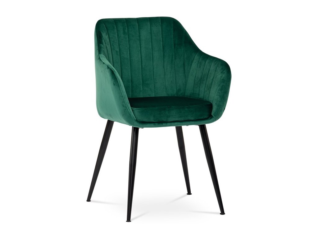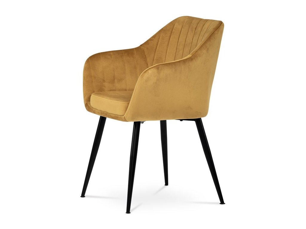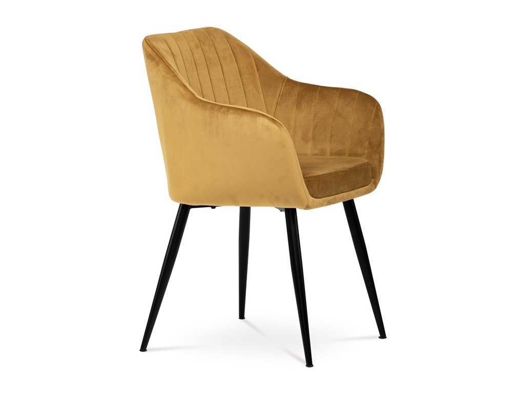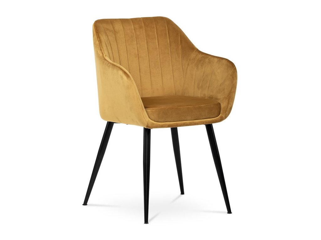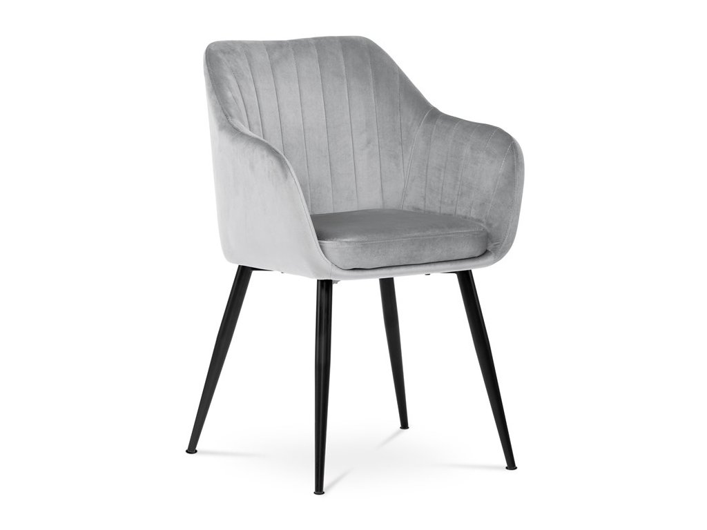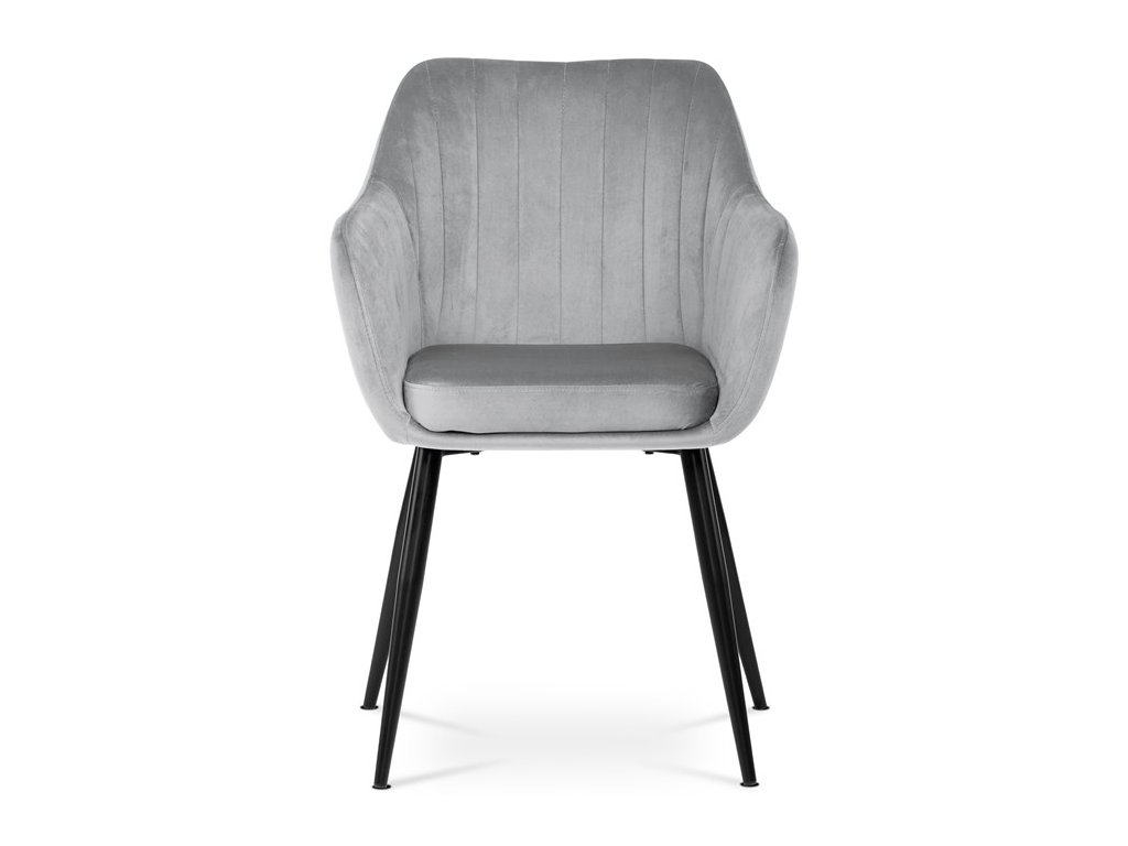 Dokonalý design, industriální styl a perfektní pohodlí je pro tuto židli samozřejmostí. Skořepina sedáku i opěradla má pevnou kovovou kostru, potah z velmi kvalitní sametové látky v matném provedení a nadčasovém a luxusním odstínu černé. Polstrování je z PU pěny. Bonusem ke zvýšení pohodlí posedu je 8 cm zvýšený a extra polstrovaný sedák a praktické pohodlné opěrky s opěrnou plochou ve výšce 69 cm od podlahy. Příjemný dekorativní prvek vytvářejí svislá prošití vnitřních částí opěradla i boků. Použitá látka je velmi odolná a perfektně se čistí. Stabilitu židle zajišťují čtyři kónické kovové nohy s kvalitním práškovým nástřikem v černé matné barvě. Ukončené jsou černými plastovými kluzáky, zabraňující poškození tvrdých povrchů podlah. Nohy mají kruhový průřez o průměru od 2 do 3,5 cm v horní části. Všechna tato plus produkují z tohoto modelu skvělou volbu pro Váš výběr zařízení jídelních a nebo obývacích prostor, ale skvěle se hodí i jako konferenční židle do zasedacích místností. Nosnost židle je až 120 kg. Základní rozměry jsou – celková šíře 58 cm, celková hloubka 57 cm, celková výška 84 cm, výška sedu 52 cm a hloubka sedu 43 cm.