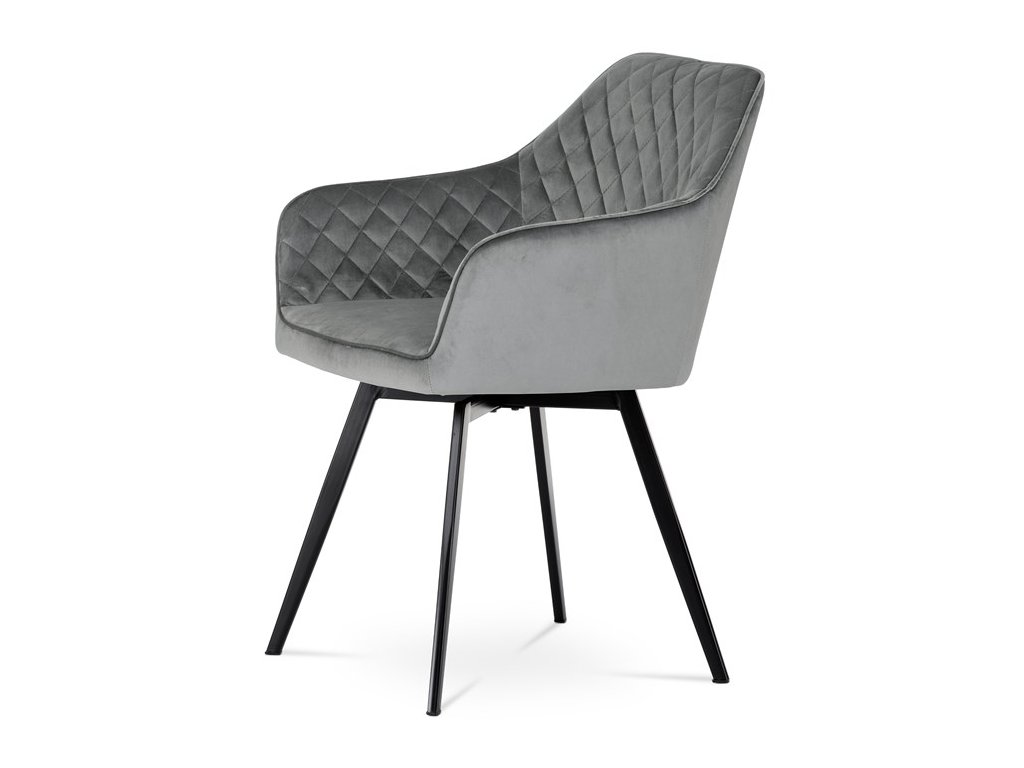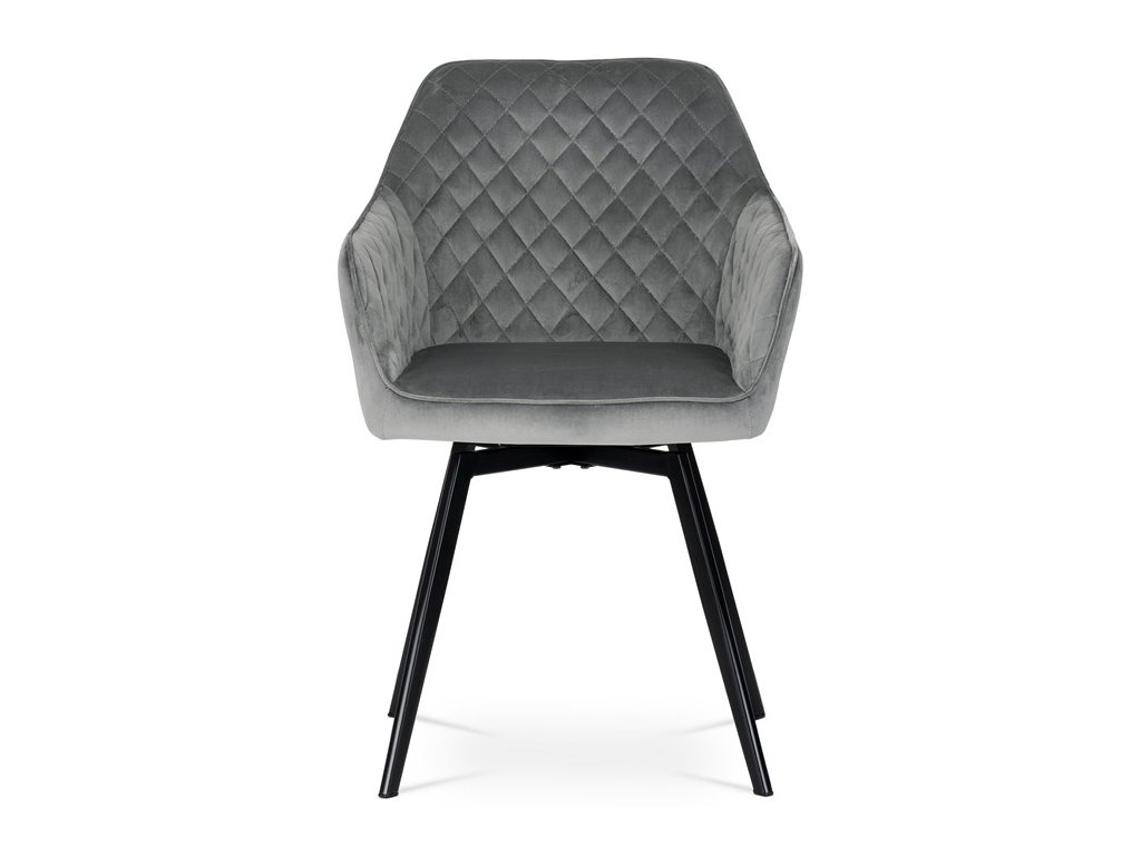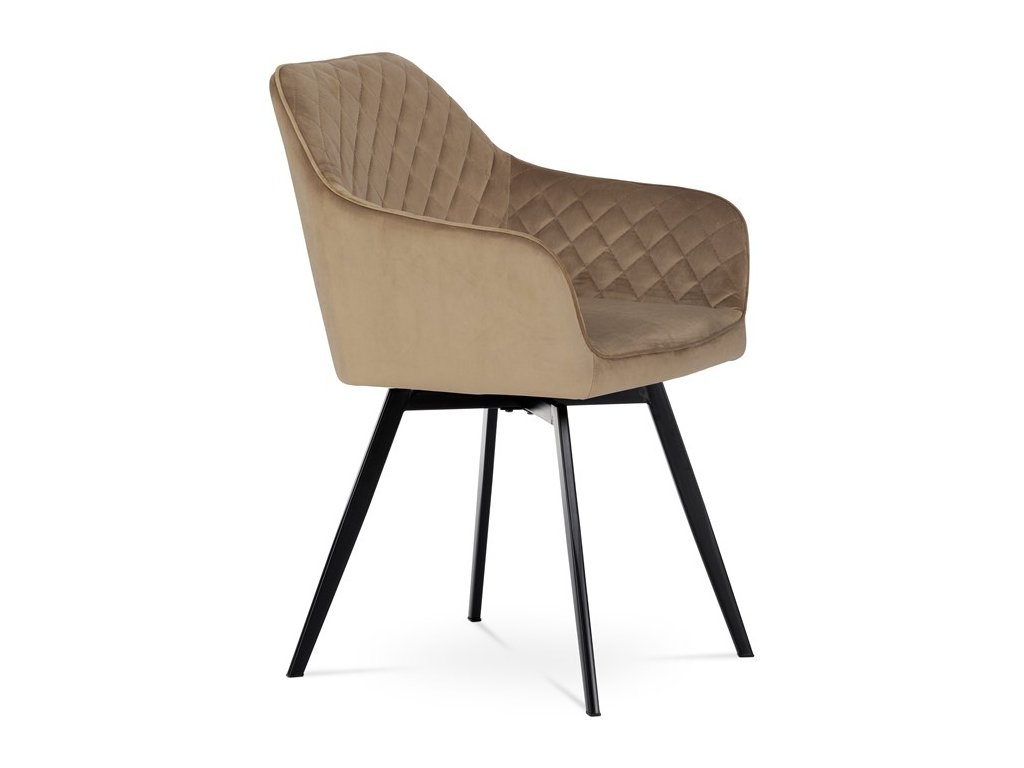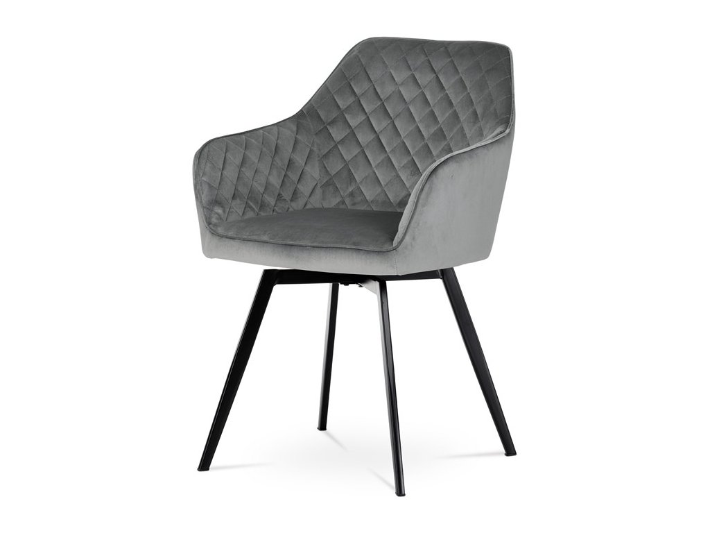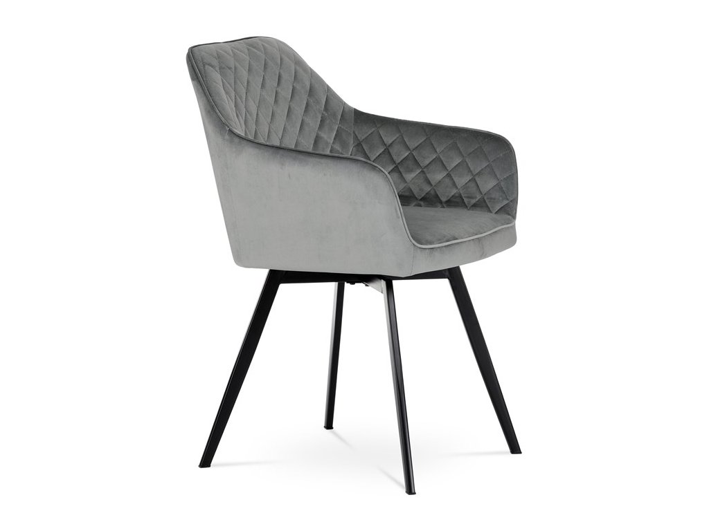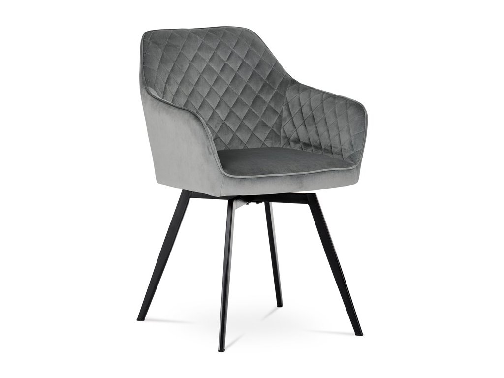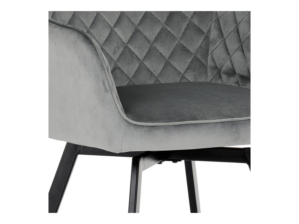 Díky svému dokonalému designu je tato židle v industriálním stylu nezaměnitelná a zároveň velmi pohodlná. Skořepina sedáku a opěradla má potah z kvalitní látky ve vesmírně černém matném sametu. Polstrování je z PU pěny. Velmi dekorativním prvkem je výrazné kosočtvercové prošití vnitřních ploch v barvě potahu a paspule po obvodu celé skořepiny. Vybraná látka se také velmi dobře čistí. Stabilitu židle zajišťují čtyři kónické kovové nohy obdélníkového průřezu s kvalitním práškovým nástřikem v černé matné barvě. Ukončené jsou černými plastovými kluzáky, zabraňující poškození tvrdých povrchů podlah. Tato provedení produkují z tohoto modelu židle skvělou volbu pro zařízení obývacích či jídelních, ale také zasedacích místností. Nosnost židle je 110 kg. Bonusem této židle je otočný a vratným mechanismus, který umožňuje otáčení o 90° doleva a o 90° doprava a zároveň vždy vrátí sedák do původní polohy. Díky němu žiidle zůstanou vždy srovnané u stolu.