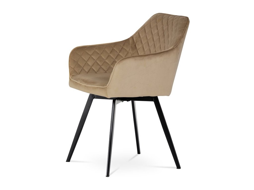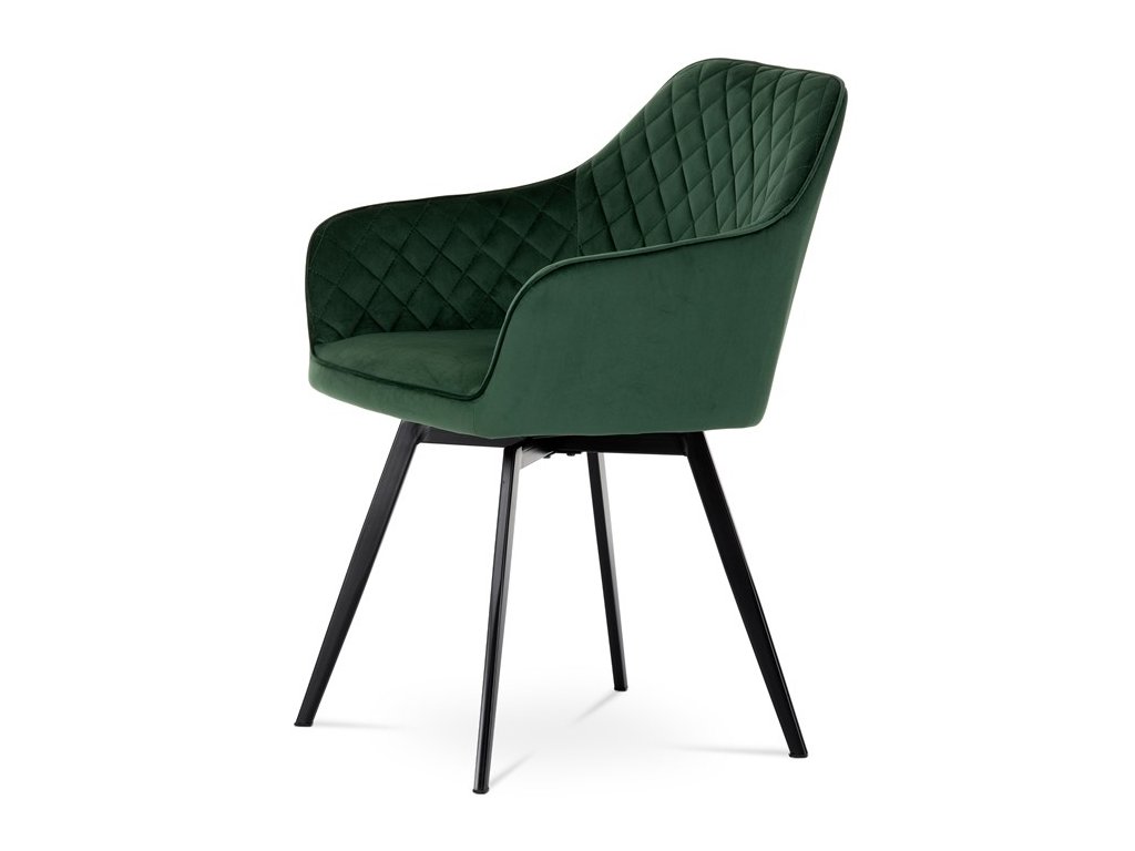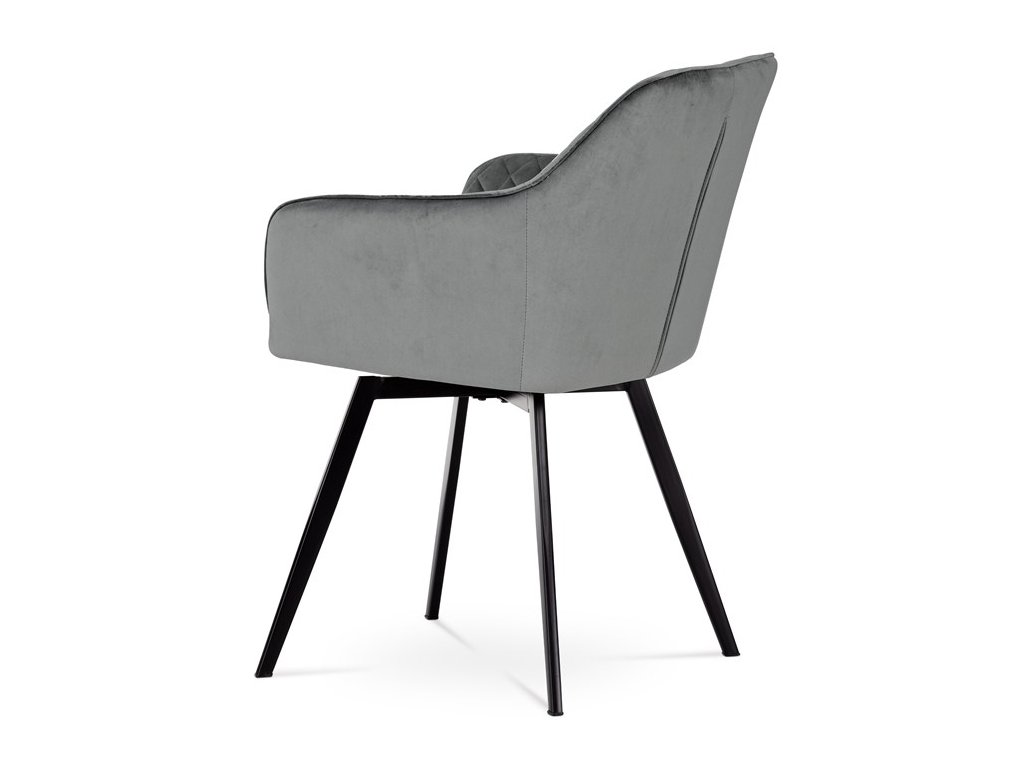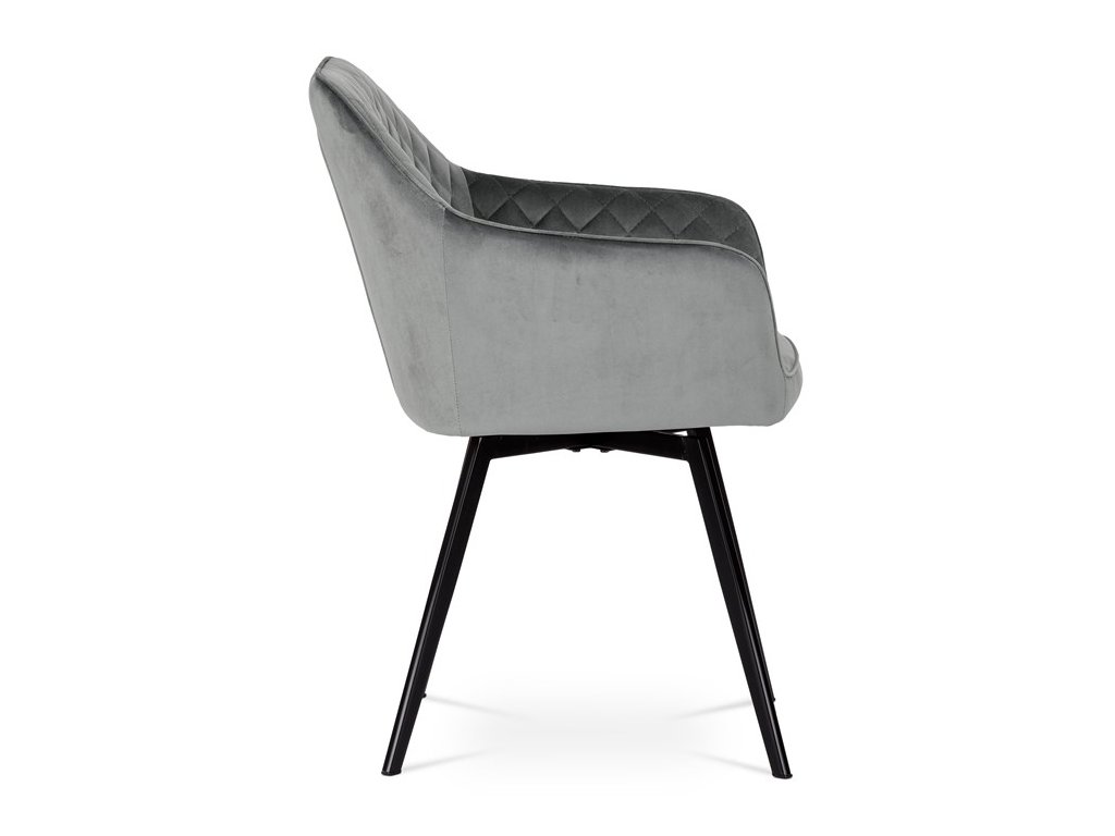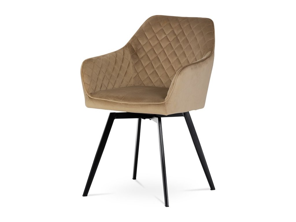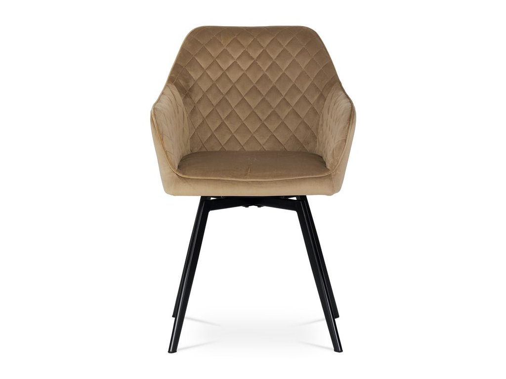 Díky svému dokonalému designu je tato židle v industriálním stylu nezaměnitelná a zároveň velmi pohodlná. Skořepina sedáku a opěradla má potah z kvalitní látky ve vesmírně černém matném sametu. Polstrování je z PU pěny. Velmi dekorativním prvkem je výrazné kosočtvercové prošití vnitřních ploch v barvě potahu a paspule po obvodu celé skořepiny. Vybraná látka se také velmi dobře čistí. Stabilitu židle zajišťují čtyři kónické kovové nohy obdélníkového průřezu s kvalitním práškovým nástřikem v černé matné barvě. Ukončené jsou černými plastovými kluzáky, zabraňující poškození tvrdých povrchů podlah. Tato provedení produkují z tohoto modelu židle skvělou volbu pro zařízení obývacích či jídelních, ale také zasedacích místností. Nosnost židle je 110 kg. Bonusem této židle je otočný a vratným mechanismus, který umožňuje otáčení o 90° doleva a o 90° doprava a zároveň vždy vrátí sedák do původní polohy. Díky němu žiidle zůstanou vždy srovnané u stolu.