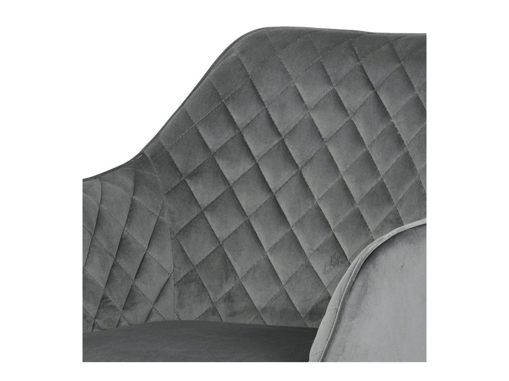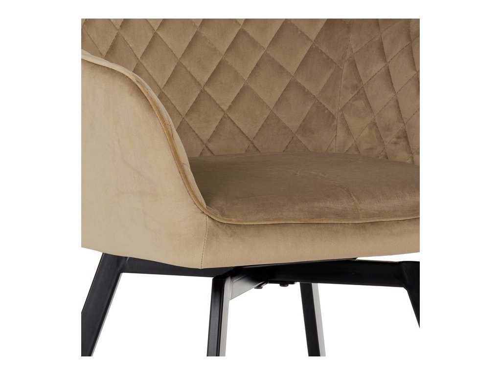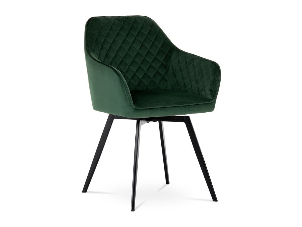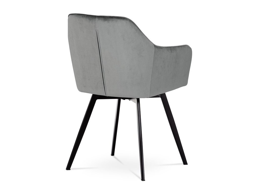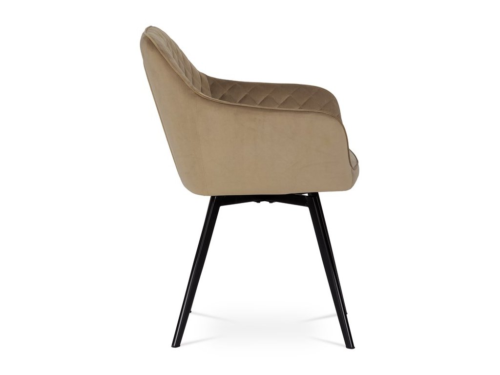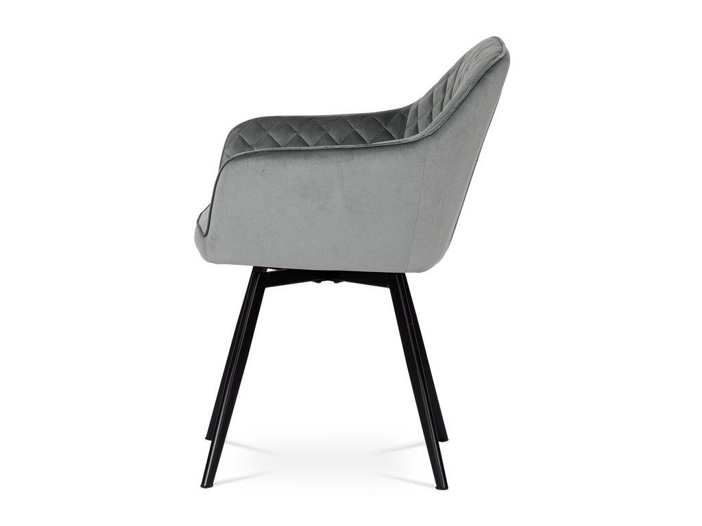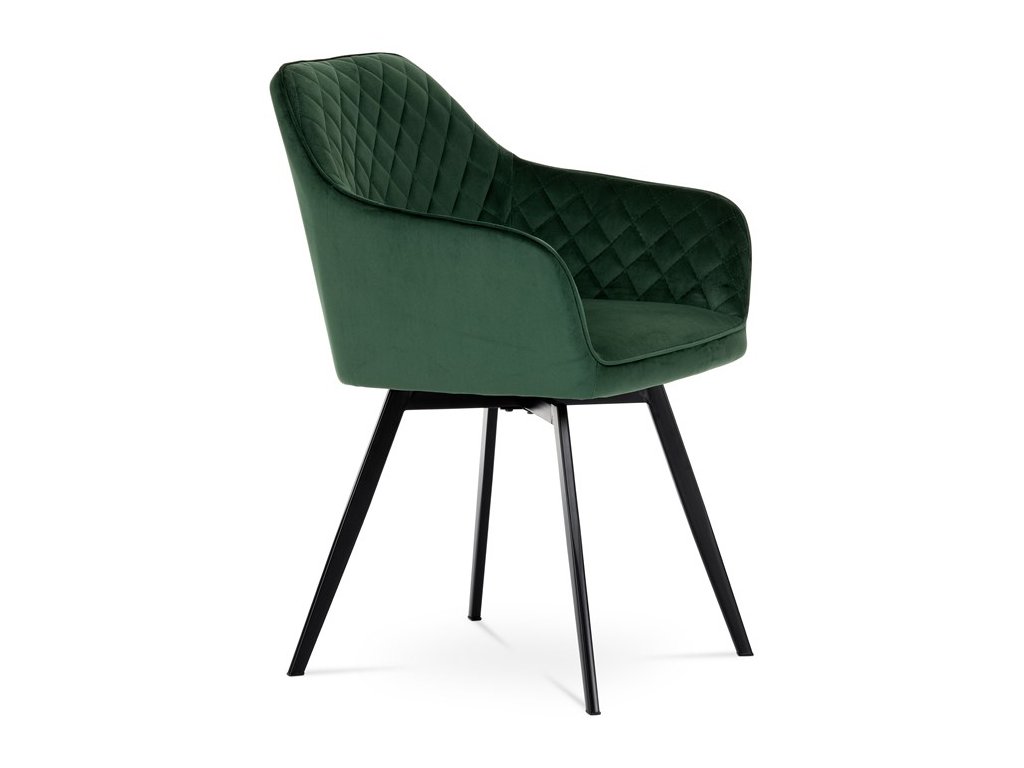 Díky svému dokonalému designu je tato židle v industriálním stylu nezaměnitelná a zároveň velmi pohodlná. Skořepina sedáku a opěradla má potah z kvalitní látky ve vesmírně černém matném sametu. Polstrování je z PU pěny. Velmi dekorativním prvkem je výrazné kosočtvercové prošití vnitřních ploch v barvě potahu a paspule po obvodu celé skořepiny. Vybraná látka se také velmi dobře čistí. Stabilitu židle zajišťují čtyři kónické kovové nohy obdélníkového průřezu s kvalitním práškovým nástřikem v černé matné barvě. Ukončené jsou černými plastovými kluzáky, zabraňující poškození tvrdých povrchů podlah. Tato provedení produkují z tohoto modelu židle skvělou volbu pro zařízení obývacích či jídelních, ale také zasedacích místností. Nosnost židle je 110 kg. Bonusem této židle je otočný a vratným mechanismus, který umožňuje otáčení o 90° doleva a o 90° doprava a zároveň vždy vrátí sedák do původní polohy. Díky němu žiidle zůstanou vždy srovnané u stolu.