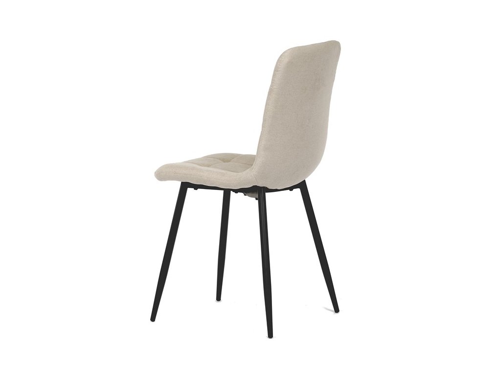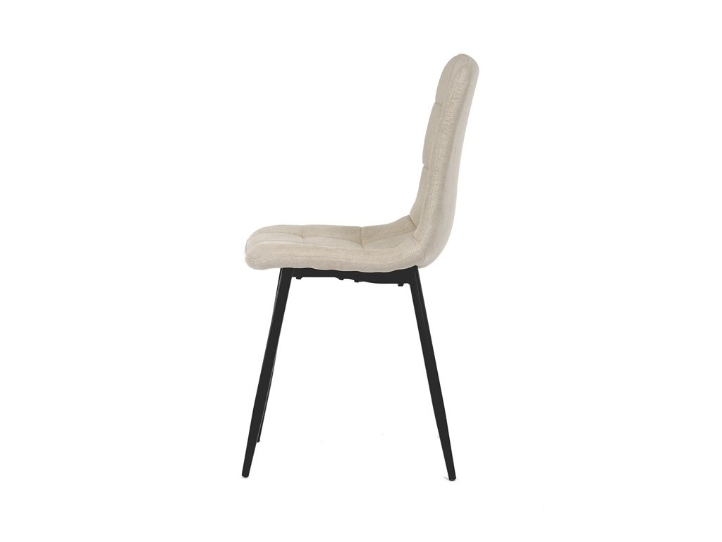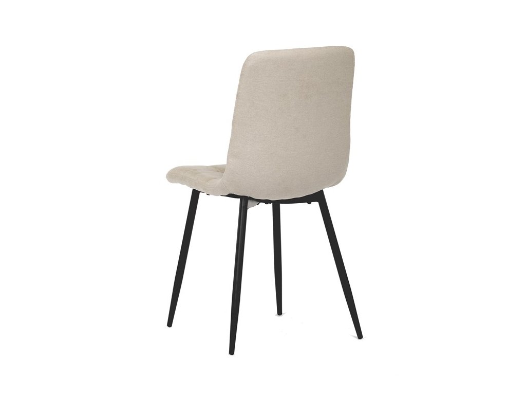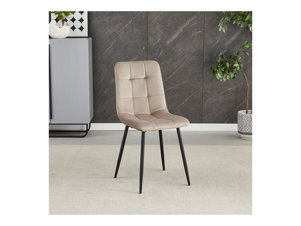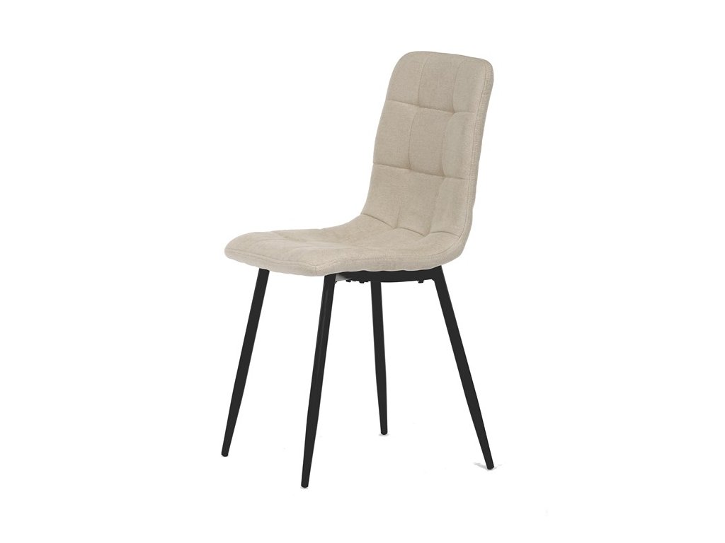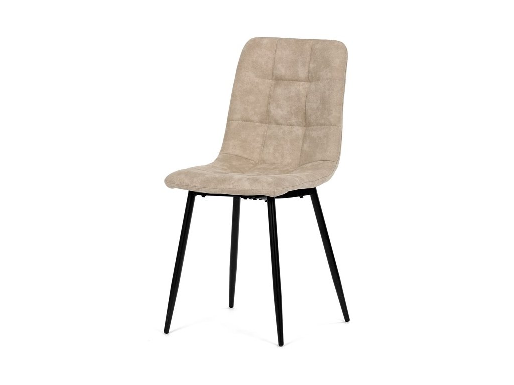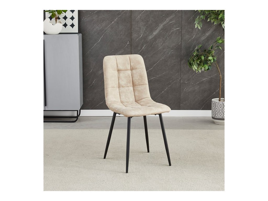 Jídelní židle v industriálním stylu. Potah je z hladké látky v krémové barvě. Výrazné je čtvercové prošití čelních ploch sedáku i opěradla. Polstrování je z kvalitní PU pěny. Stabilitu židle zajišťují čtyři kónické kovové nohy s kvalitním práškovým nástřikem v černé matné barvě. Ukončené jsou černými plastovými kluzáky, zabraňujícími poškození tvrdých povrchů podlah. Nohy jsou kruhového průřezu o nejvyšším průměru 3 cm. Tento minimalistický design jídelních židlí je velmi oblíben pro svoji nadčasovost i pohodlí, které poskytuje. Můžete ji bez obav použít k široké škále stolů v různých materiálech i provedeních.