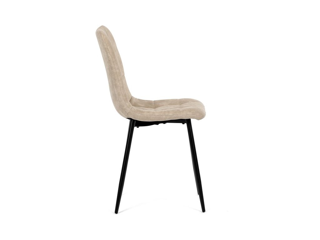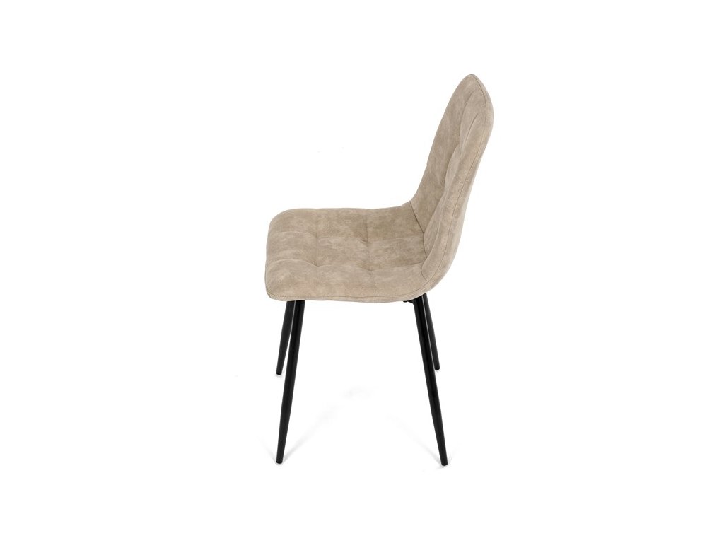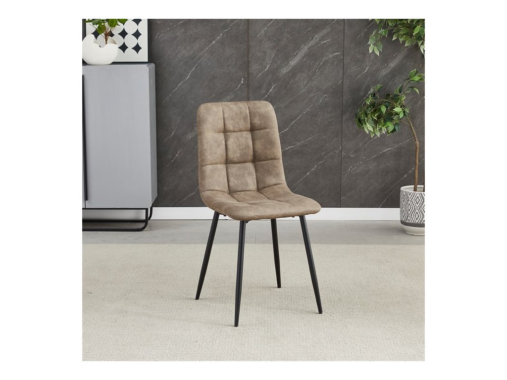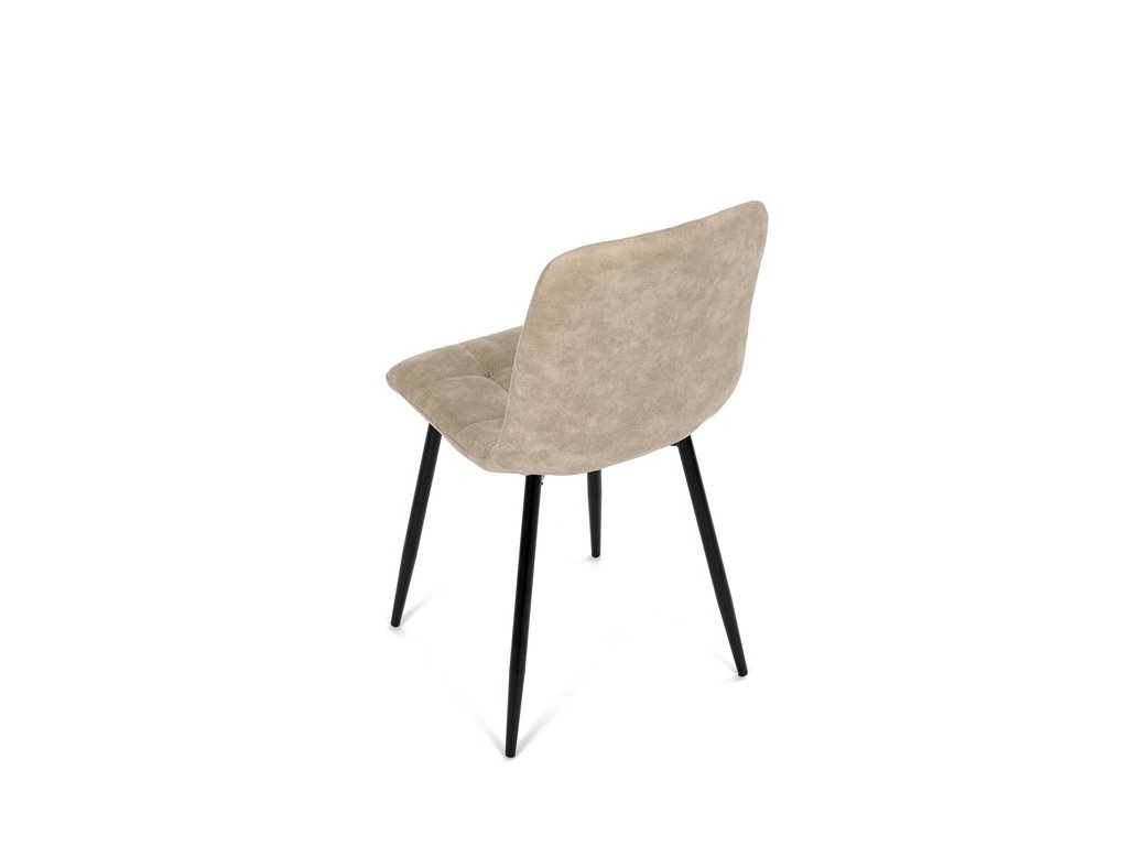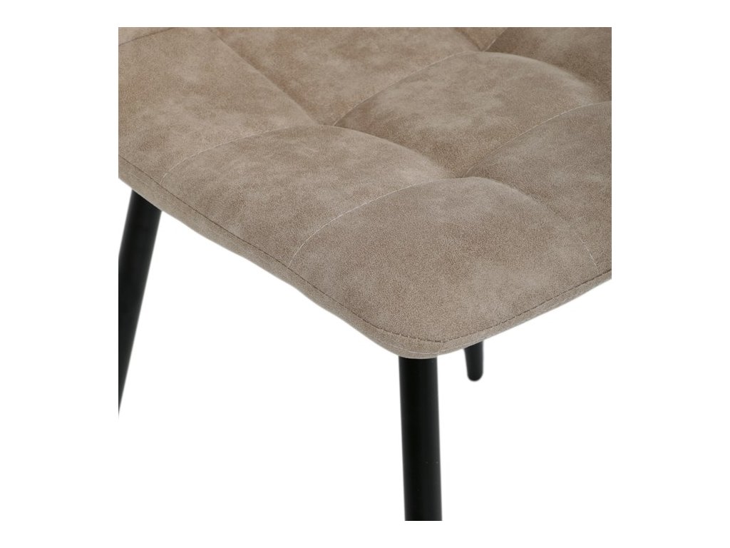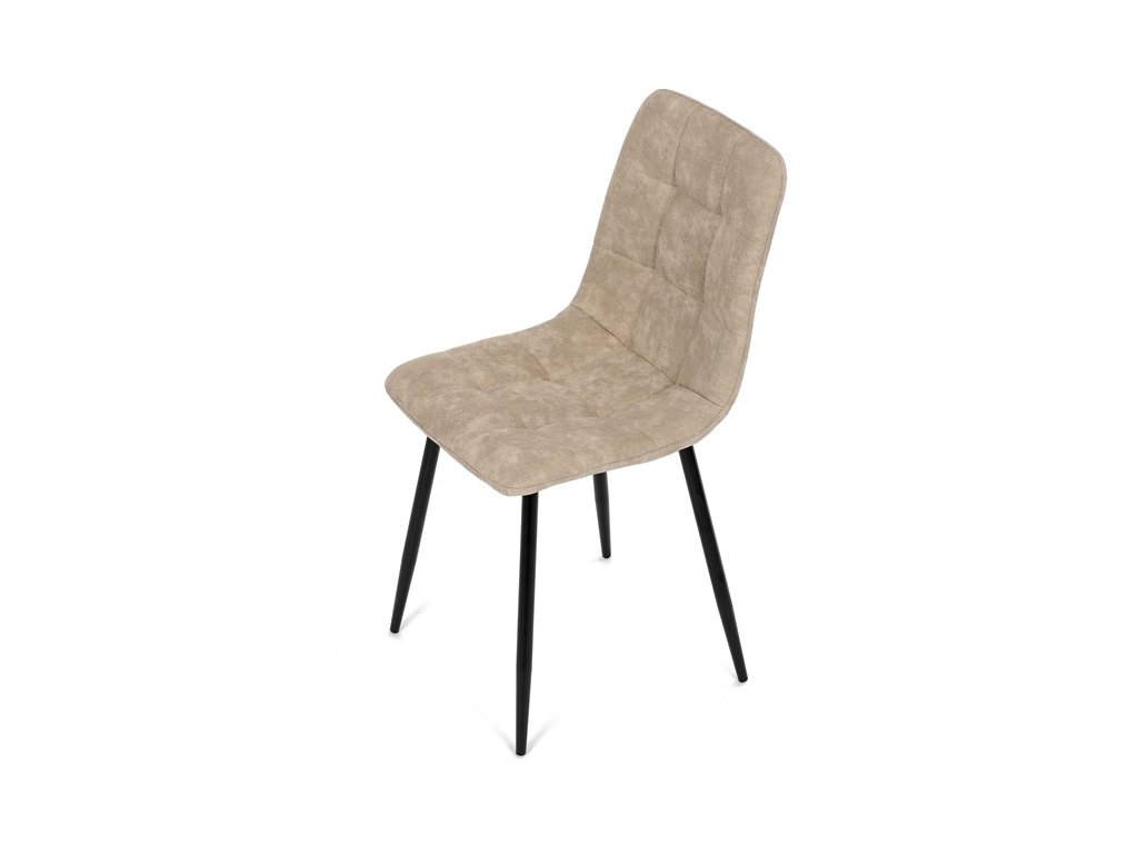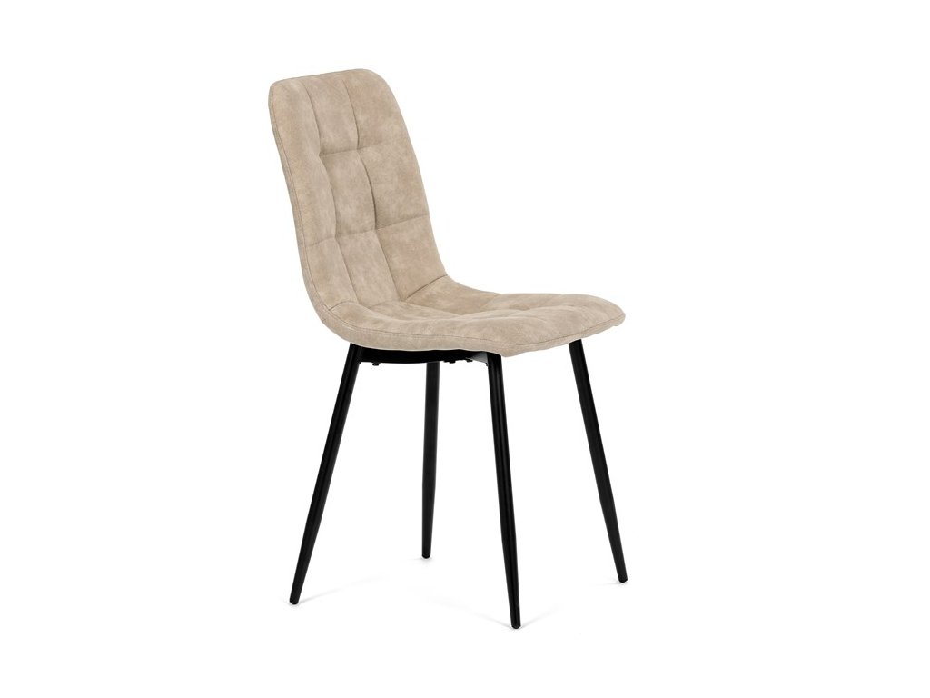 Jídelní židle v industriálním stylu. Potah je z hladké látky v krémové barvě. Výrazné je čtvercové prošití čelních ploch sedáku i opěradla. Polstrování je z kvalitní PU pěny. Stabilitu židle zajišťují čtyři kónické kovové nohy s kvalitním práškovým nástřikem v černé matné barvě. Ukončené jsou černými plastovými kluzáky, zabraňujícími poškození tvrdých povrchů podlah. Nohy jsou kruhového průřezu o nejvyšším průměru 3 cm. Tento minimalistický design jídelních židlí je velmi oblíben pro svoji nadčasovost i pohodlí, které poskytuje. Můžete ji bez obav použít k široké škále stolů v různých materiálech i provedeních.