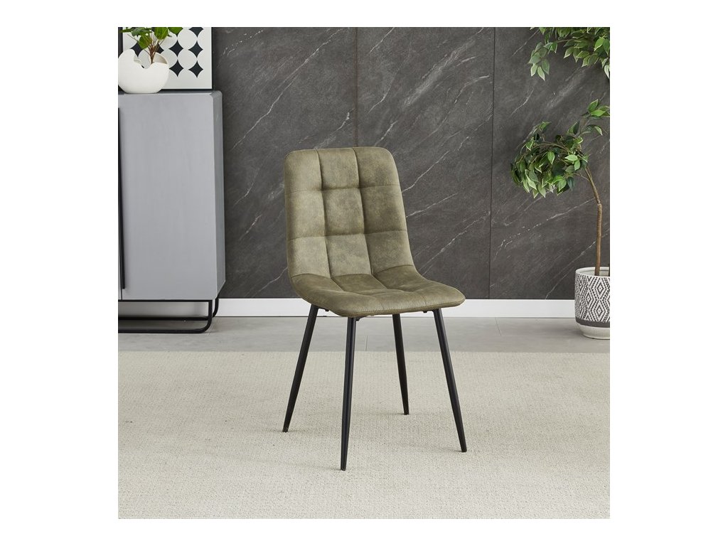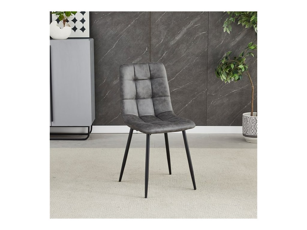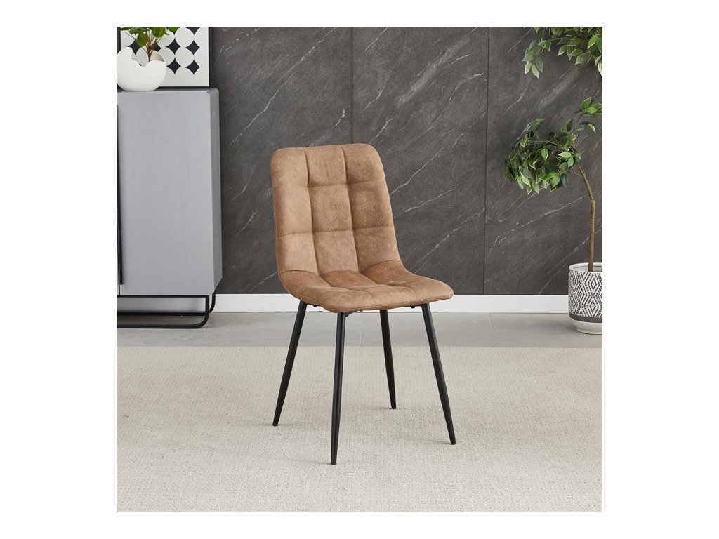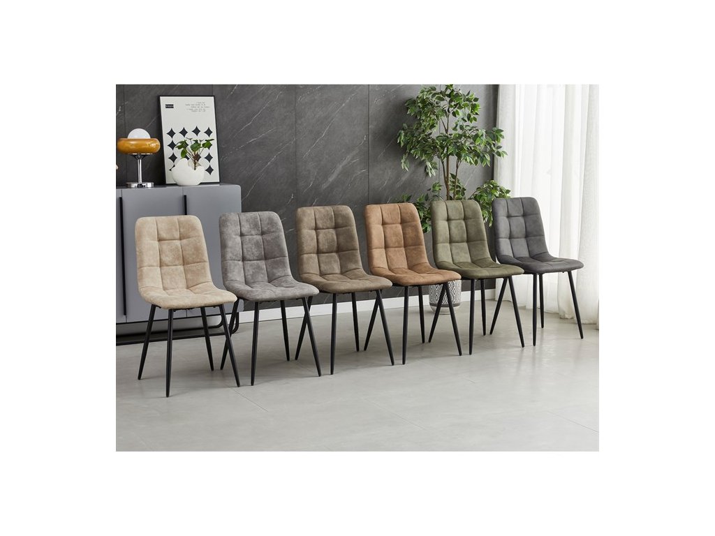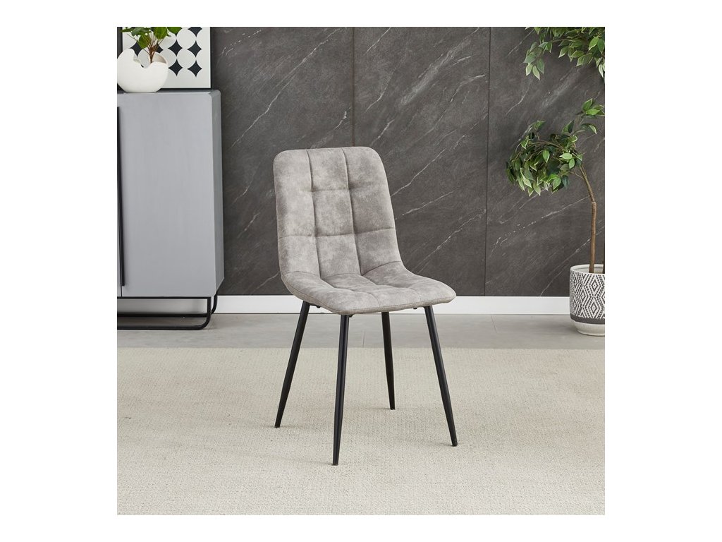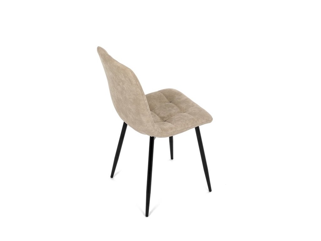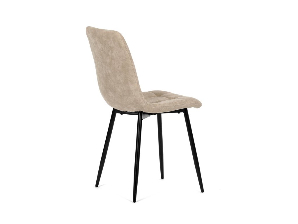 Jídelní židle v industriálním stylu. Potah je z hladké látky v krémové barvě. Výrazné je čtvercové prošití čelních ploch sedáku i opěradla. Polstrování je z kvalitní PU pěny. Stabilitu židle zajišťují čtyři kónické kovové nohy s kvalitním práškovým nástřikem v černé matné barvě. Ukončené jsou černými plastovými kluzáky, zabraňujícími poškození tvrdých povrchů podlah. Nohy jsou kruhového průřezu o nejvyšším průměru 3 cm. Tento minimalistický design jídelních židlí je velmi oblíben pro svoji nadčasovost i pohodlí, které poskytuje. Můžete ji bez obav použít k široké škále stolů v různých materiálech i provedeních.