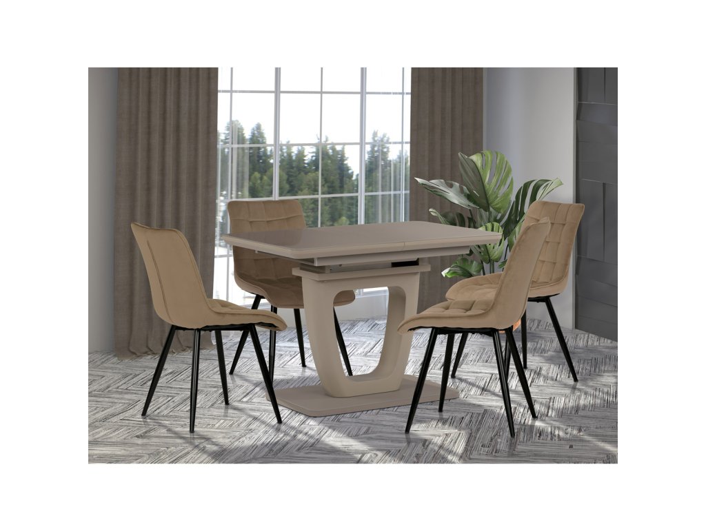 Jídelní židle, potah v krémovém sametu, kovové podnoží v černé práškové barvě