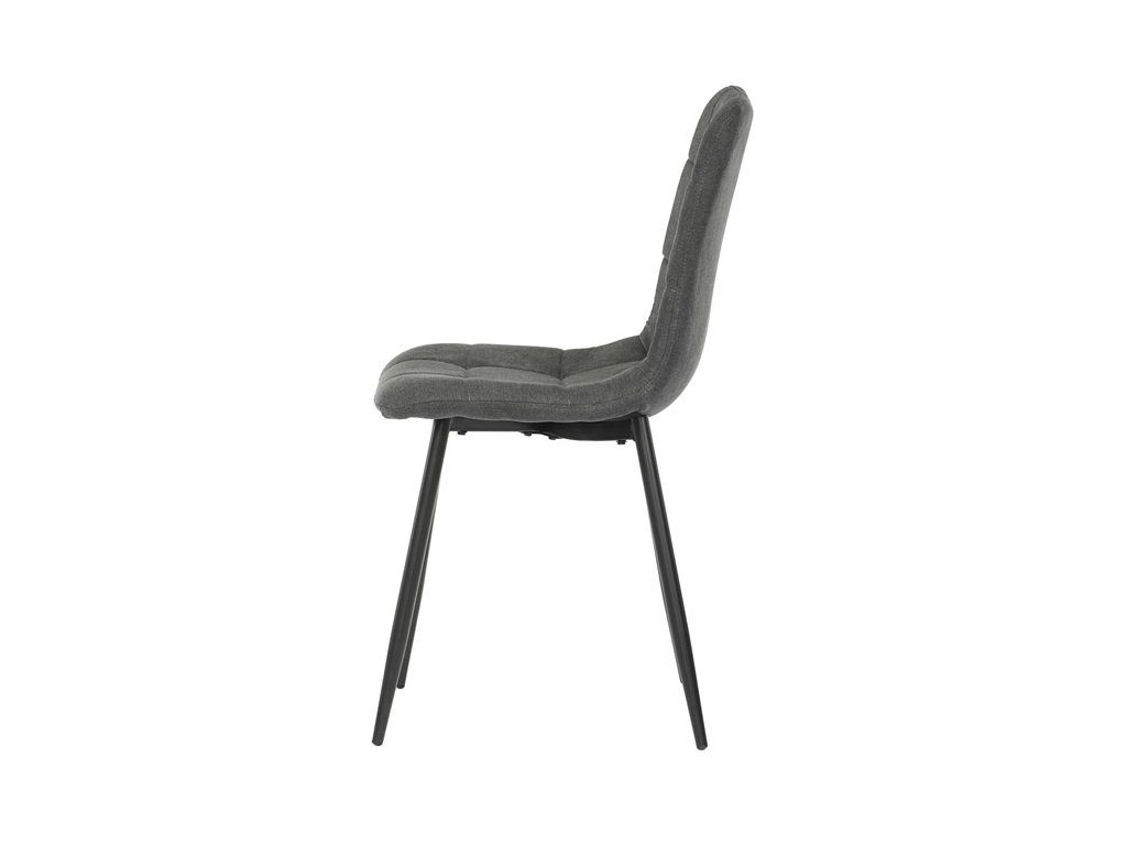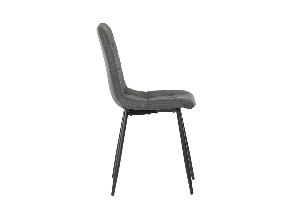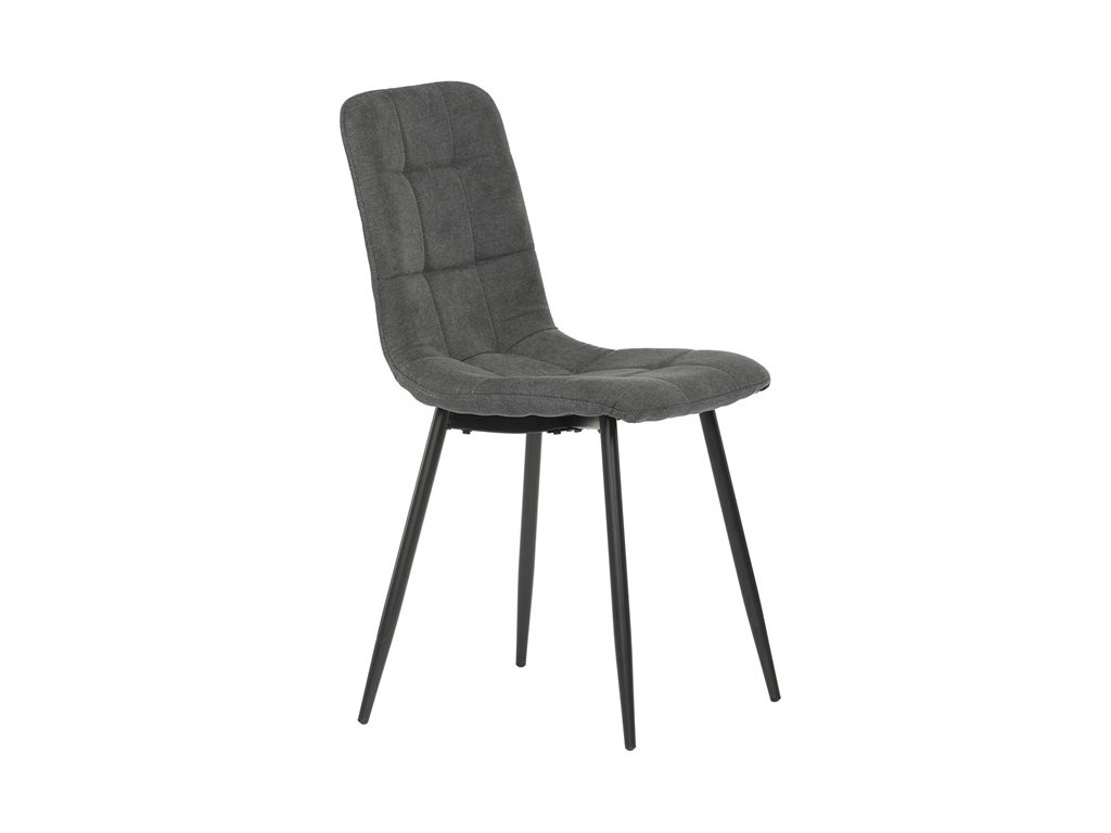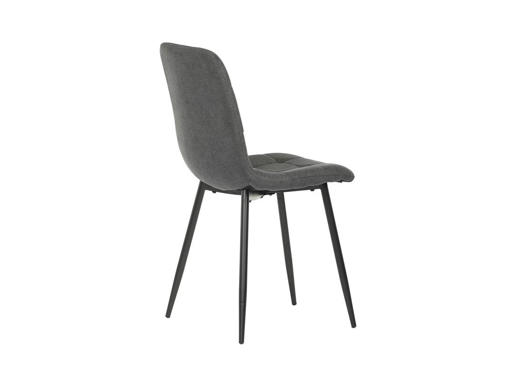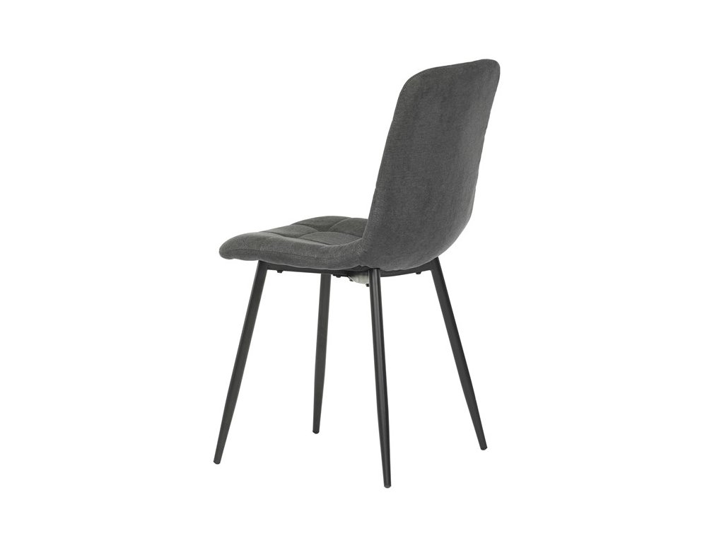 Jídelní židle v industriálním stylu. Potah je z hladké látky v šedé barvě. Výrazné je čtvercové prošití čelních ploch sedáku i opěradla. Polstrování je z kvalitní PU pěny. Stabilitu židle zajišťují čtyři kónické kovové nohy s kvalitním práškovým nástřikem v černé matné barvě. Ukončené jsou černými plastovými kluzáky, zabraňujícími poškození tvrdých povrchů podlah. Nohy jsou kruhového průřezu o nejvyšším průměru 3 cm. Tento minimalistický design jídelních židlí je velmi oblíben pro svoji nadčasovost i pohodlí, které poskytuje. Můžete ji bez obav použít k široké škále stolů v různých materiálech i provedeních.
