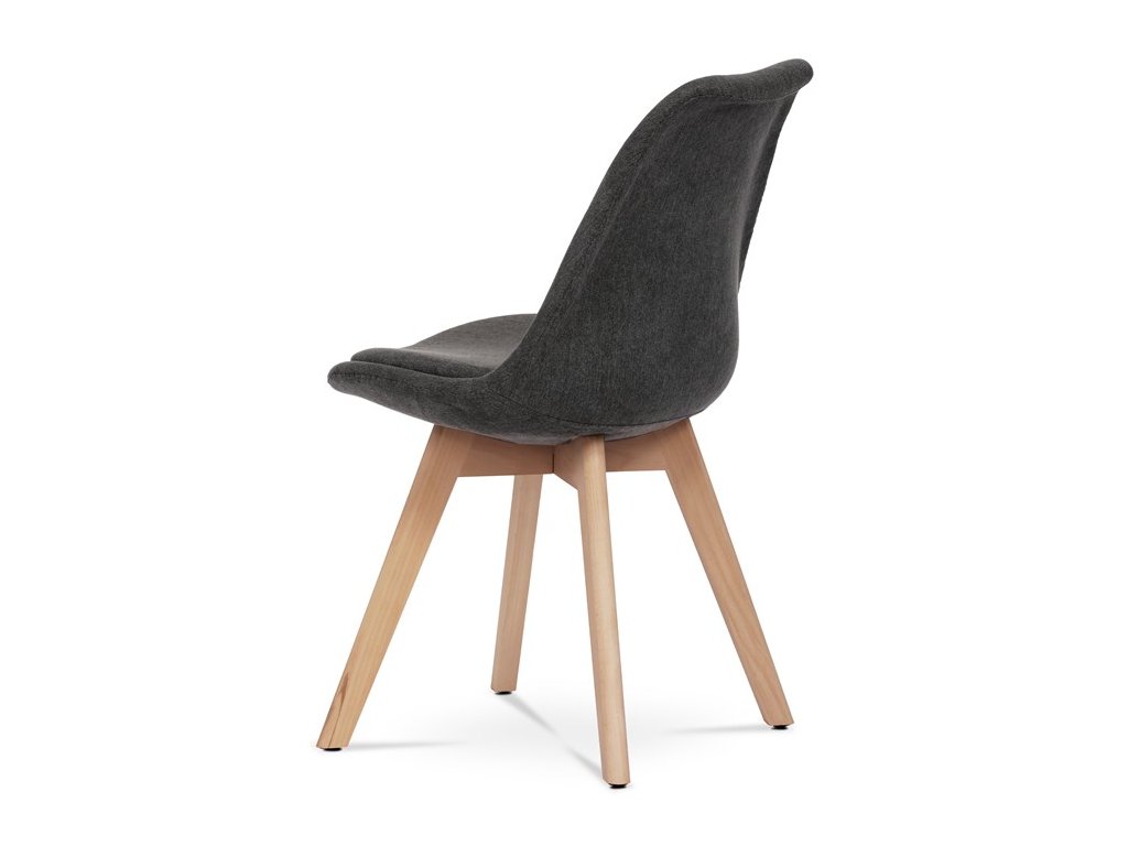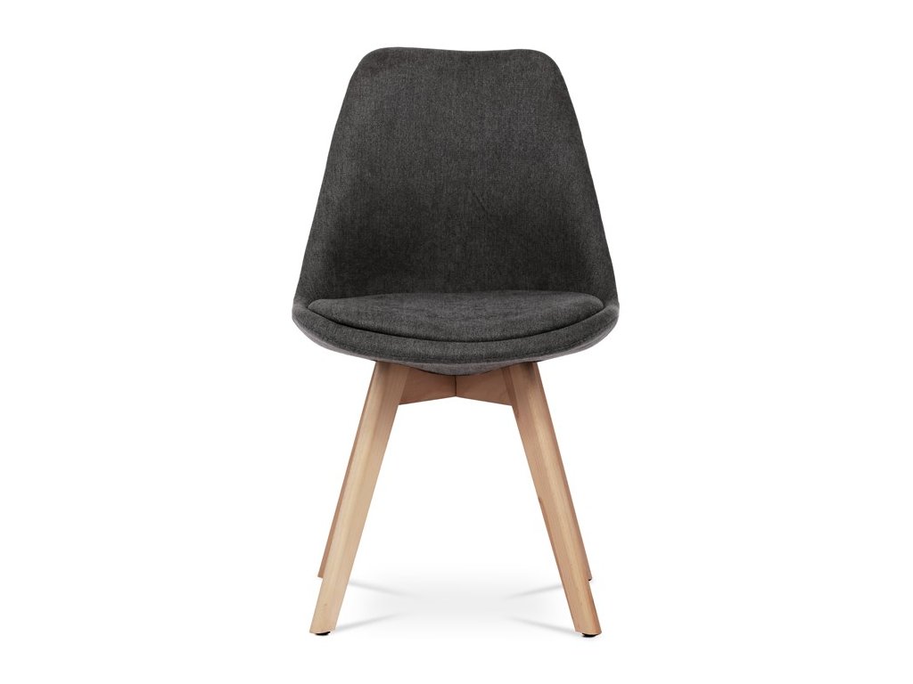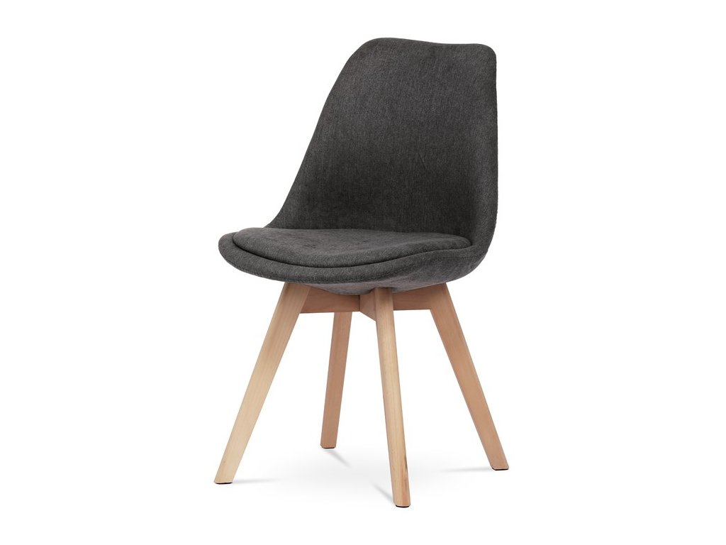 Jídelní židle s tvarovaným čalouněným korpusem v šedé barvě, vybavená pohodlným polstrovaným sedákem, který ladí s opěrkou. Nohy jsou vyrobeny z bukového masivu v přírodním odstínu, dodávající židli stabilitu a estetický kontrast. Židle je navržena s ohledem na pohodlí i styl, což ji činí ideální volbou pro moderní interiéry. Plastové kluzáky na nohách zajišťují ochranu podlahové krytiny před poškozením. Díky svému elegantnímu skandinávskému designu je vhodná do kuchyní, pracoven i obývacích pokojů.