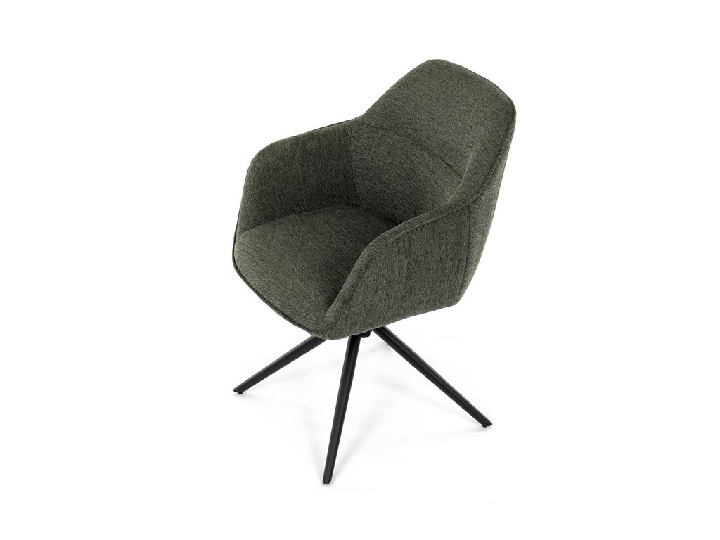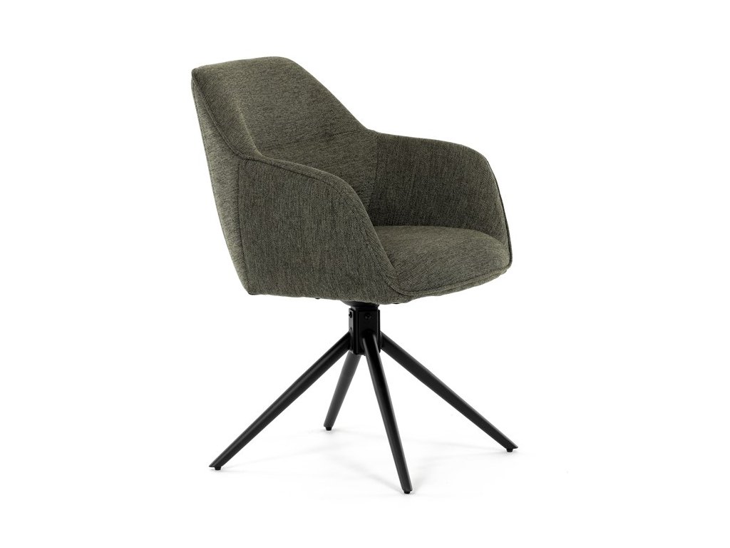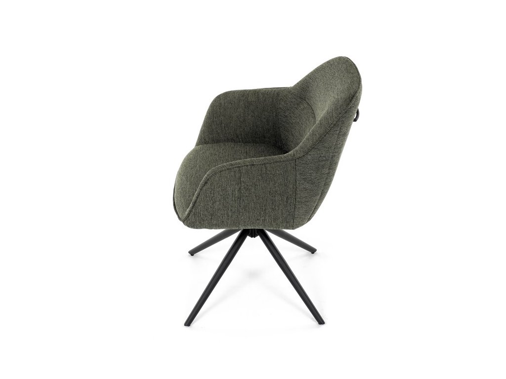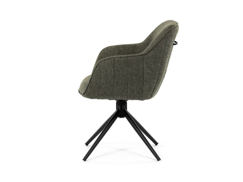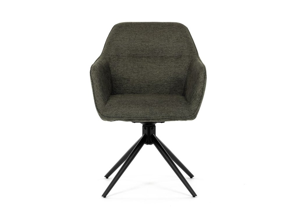 Moderní jídelní židle v zelené barvě s efektním prošitím zádové i přední části opěráku. Prošití je v brvě potahového materiálu. Zadní část opěráku je opatřena vkusným madlem pro snazší manipulaci. Čtyři kovové nohy v matném práškovém nástřiku vycházejí z centrálního bodu ve středu sedáku. Sedák je otočný o P90°+ L 90° s vratným mechanismem - funkce reset.