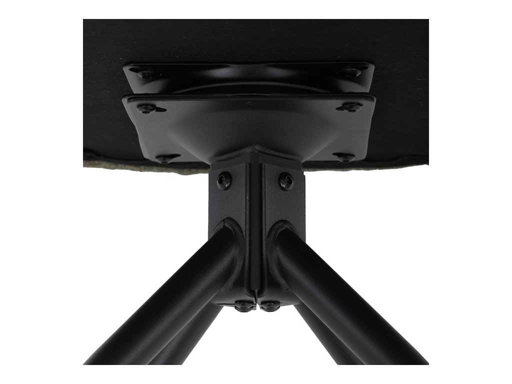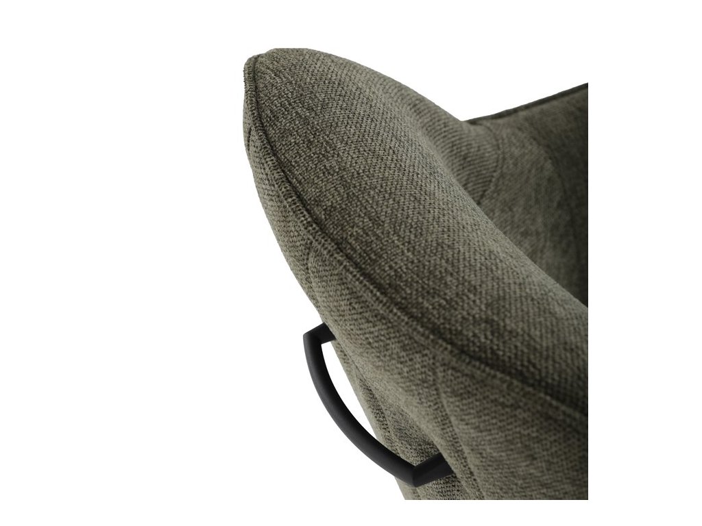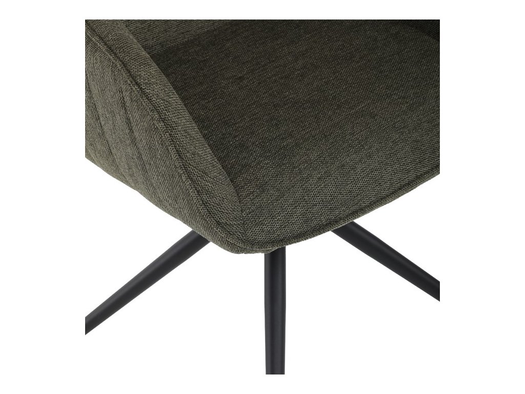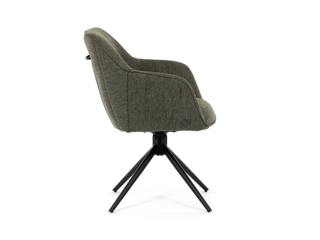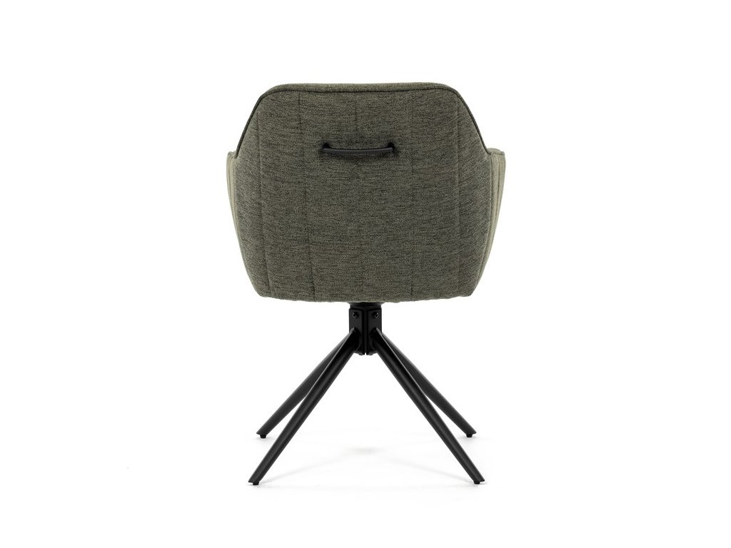 Moderní jídelní židle v zelené barvě s efektním prošitím zádové i přední části opěráku. Prošití je v brvě potahového materiálu. Zadní část opěráku je opatřena vkusným madlem pro snazší manipulaci. Čtyři kovové nohy v matném práškovém nástřiku vycházejí z centrálního bodu ve středu sedáku. Sedák je otočný o P90°+ L 90° s vratným mechanismem - funkce reset.