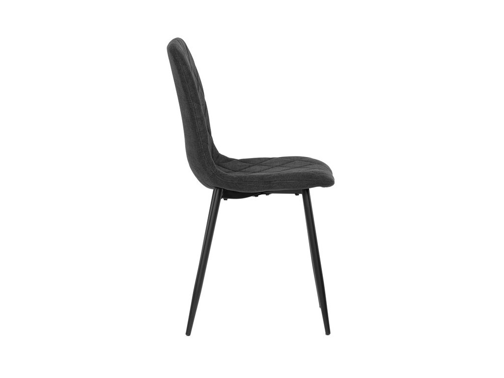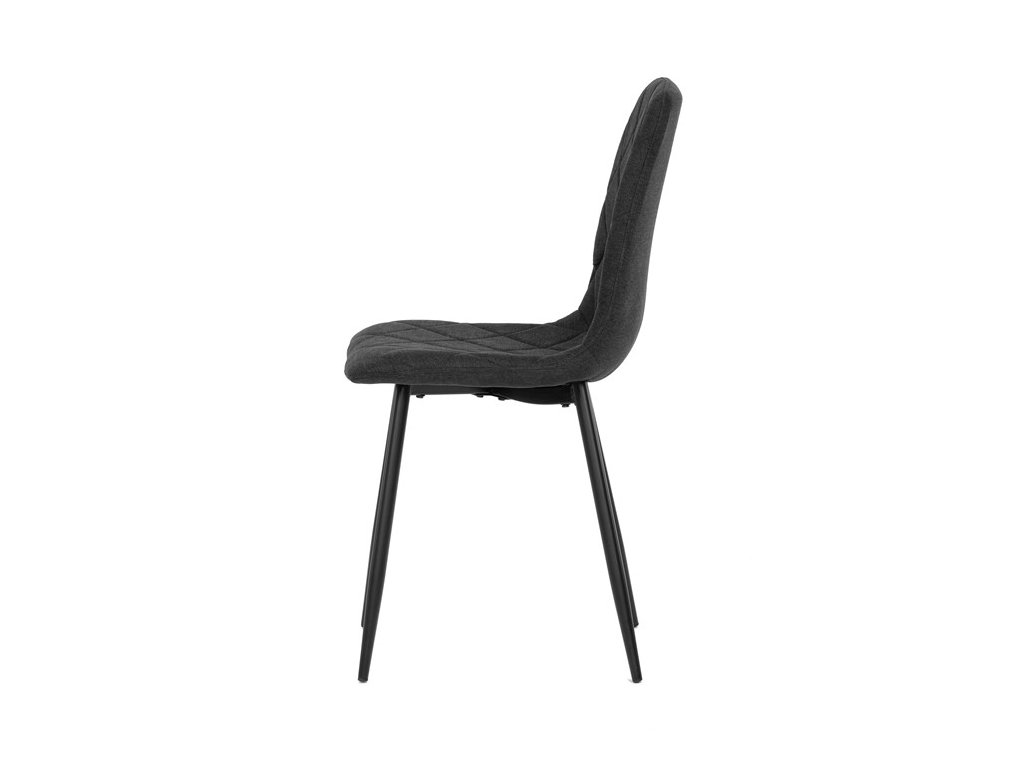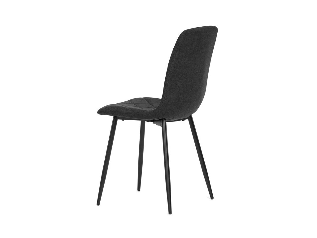 Moderní, stylová a pohodlná – to jsou hlavní atributy této černé jídelní židle s látkovým potahem a černými kovovými nohami.Tato elegantní jídelní židle je ideální volbou pro moderní interiéry. Maximální komfort je dosažen polstrováním sedáku i zádové opěrky. Čalounění z vysoce kvalitní hladké tkaniny zajistí skvělý komfort při jídle nebo dlouhých večerech s přáteli a rodinou. Díky nohám vyrobeným z kovu je zajištěna zvýšená stabilita a odolnost proti opotřebení. Matná barva v kombinaci s hladkou látkou vytváří vkusný a moderní vzhled. Nosnost činí 120 kg.