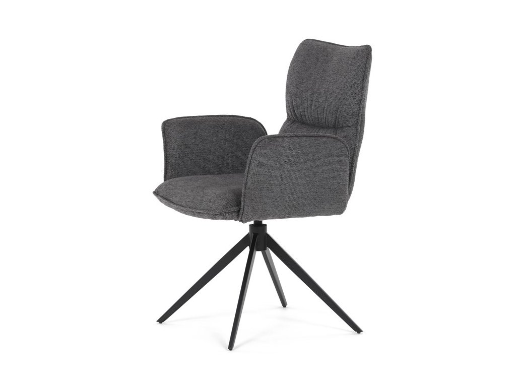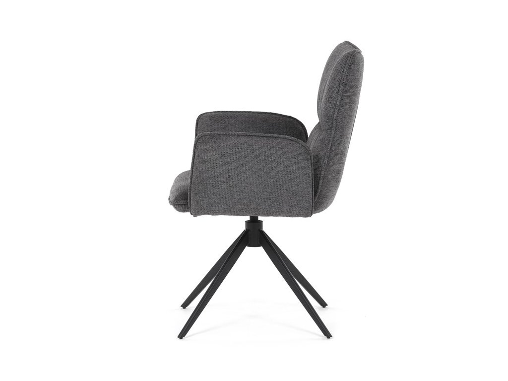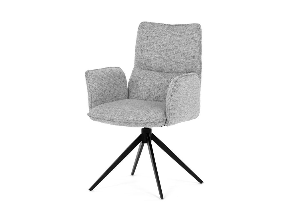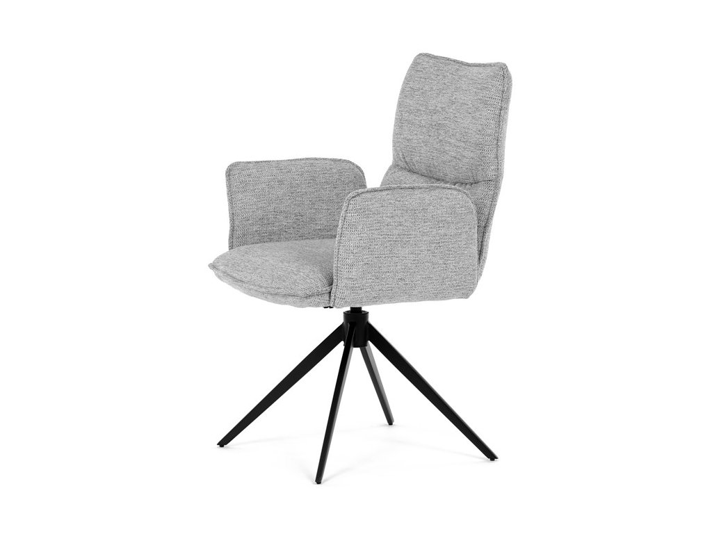 Jídelní židle DCH-D1328 GREY2 značky Autronic vyniká 360° vratným mechanismem, který umožňuje plynulý a tichý otáčivý pohyb pro maximální flexibilitu při sezení. Čalounění z kvalitní šedé látky poskytuje příjemný a měkký povrch s decentní texturou, která zvyšuje komfort i estetickou hodnotu. Konstrukce područek je pevně integrována do čalouněné části, což zajišťuje pohodlnou oporu paží během sezení. Stabilní podnož je vyrobena z černě práškovaného kovu, který garantuje vysokou pevnost a odolnost proti opotřebení, přičemž design podnože se skládá ze čtyř úhlových nohou rozložených do širokého stabilního tvaru. Ergonomicky tvarovaný sedák a opěradlo podporují správné držení těla a přispívají k dlouhodobému pohodlí při používání. Židle je vhodná pro moderní jídelny i pracovní prostory, kde je vyžadována kombinace komfortu a funkčnosti. Nosnost židle odpovídá standardním požadavkům na jídelní sezení a její rozměry jsou optimalizovány pro univerzální použití v interiéru.